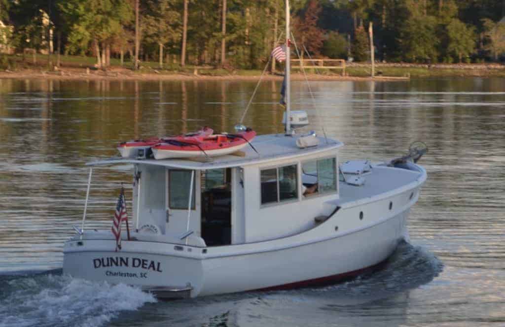 This Memory 38 is a very traditional style Pilothouse Trawler. She was designed by Tad Roberts, and built as a one off in 2000 using modern materials, fiberglass with vinyl ester resin and foam coring in hull and decks. Dunn Deal is long, narrow and slippery. At 7 knot cruise she gets >14 mpg. She has just completed a three year upgrade and improvement of all systems aboard.Already a member? Log in herePhotos