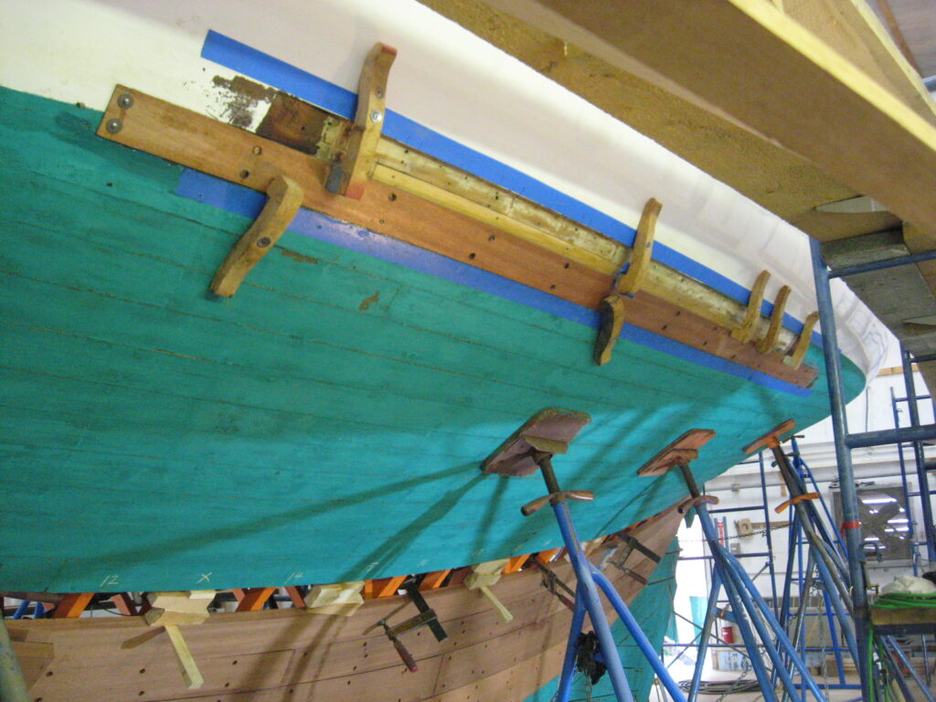 Dyon’s construction is a combination of sawn and bent frames with double planking of mahogany. Naturally all the fastenings are of bronze or copper. The trim and deck arc of teak. An innovation, at the time, in the rig was the use of slides on the gaff as well as the boom. This also worked to perfection and insured the perfect set of the head of the mainsail. One feature of her lay-out is the big cockpit. This was designed by P.L.Smith to comfortably accommodate his large numbers of guests during day sails.