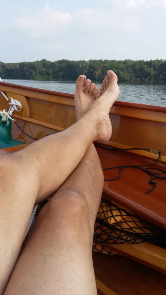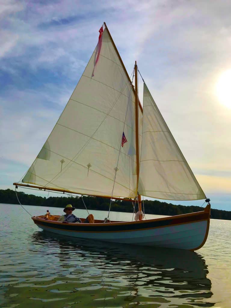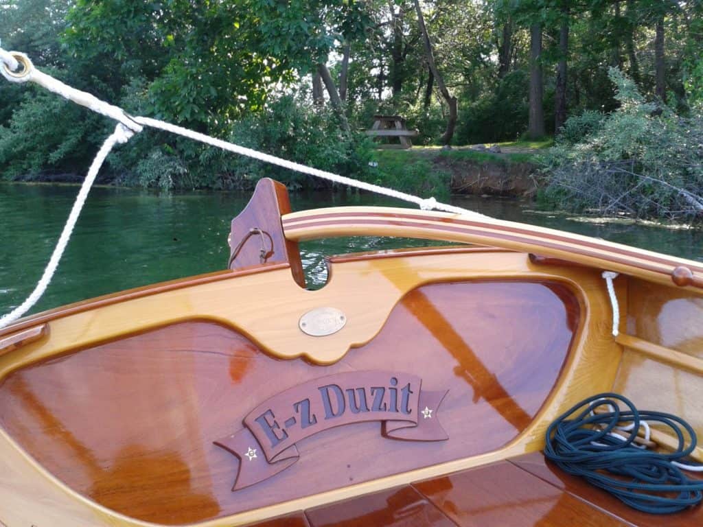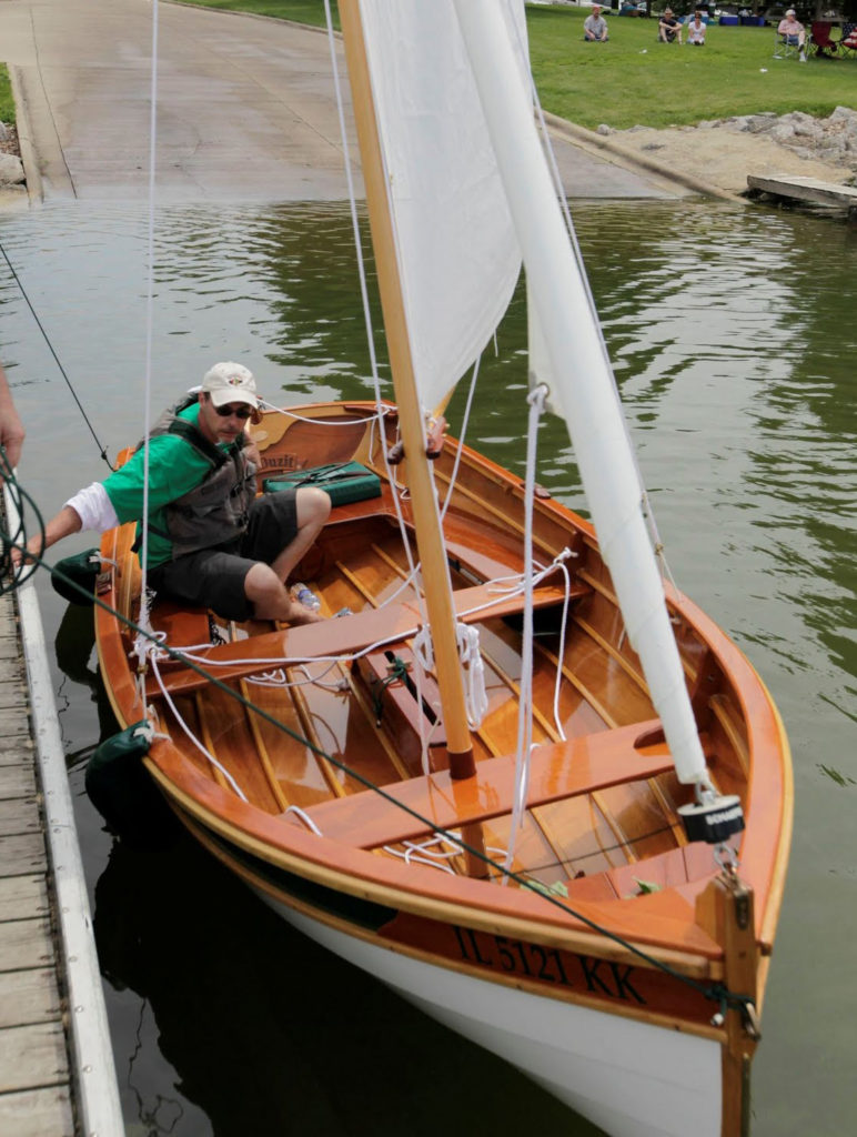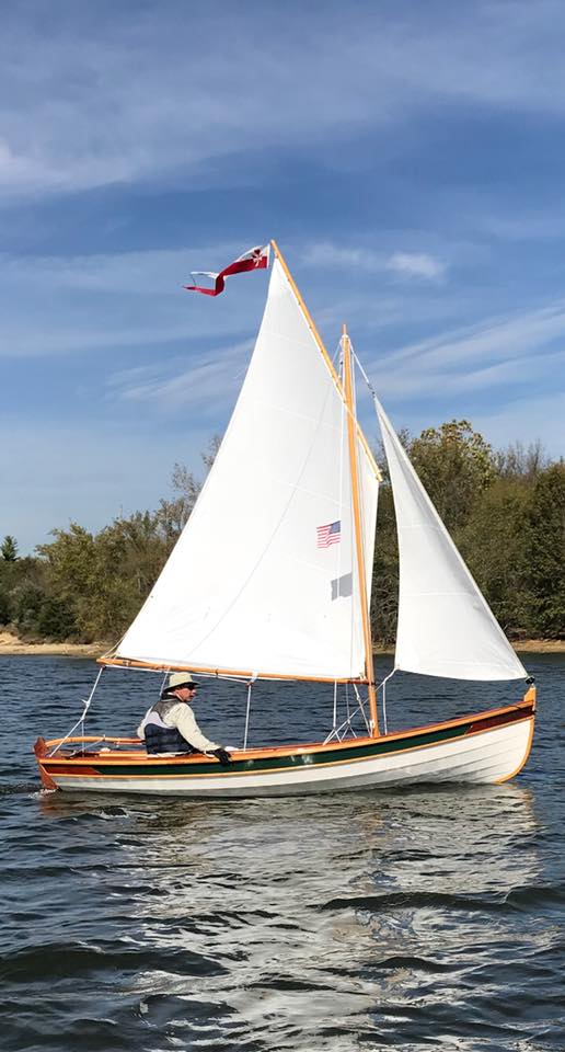 E-Z-Duzit, the epitome of “Start Out Slow then Ease Up”. Evident especially in one of the pictures showing a bare foot laid back day on the lake! The Penobscot 14 is also a great boat to enjoy under oar. I especially like to practice feathering the oars and watching the puddles form while gliding along. The classic lines of her sweeping hull are sure to turn heads. She is constructed of marine ply, mahogany, white oak and sitka spruce. The build time was just under 4 years. However, I went by the philosophy of take my time and do a good job, living up to her name “E-Z Duzit” Having a lug sail and small jib present a sail plan that at distance, would remind a wooden boat enthusiast of the well known Herreshoff 12 1/2, well maybe if near sighted and wearing an eye patch. Regardless, my Penobscot 14, E-Z Duzit is a classic in my eyes. Oh, and after all, if your boat has been immortalized in a painting, it must be a classic. (see picture below) This painting was done by a gentleman that saw my blog and reached out to me. We struck up a friendship and I commissioned him to paint this scene. I love his style and use of color! Thank You for viewing my entry. Here is a blog about building E-Z Duzit. http://penobscot14-sailboat.blogspot.com/ Also linked at the right under “Website”Already a member? Log in herePhotos