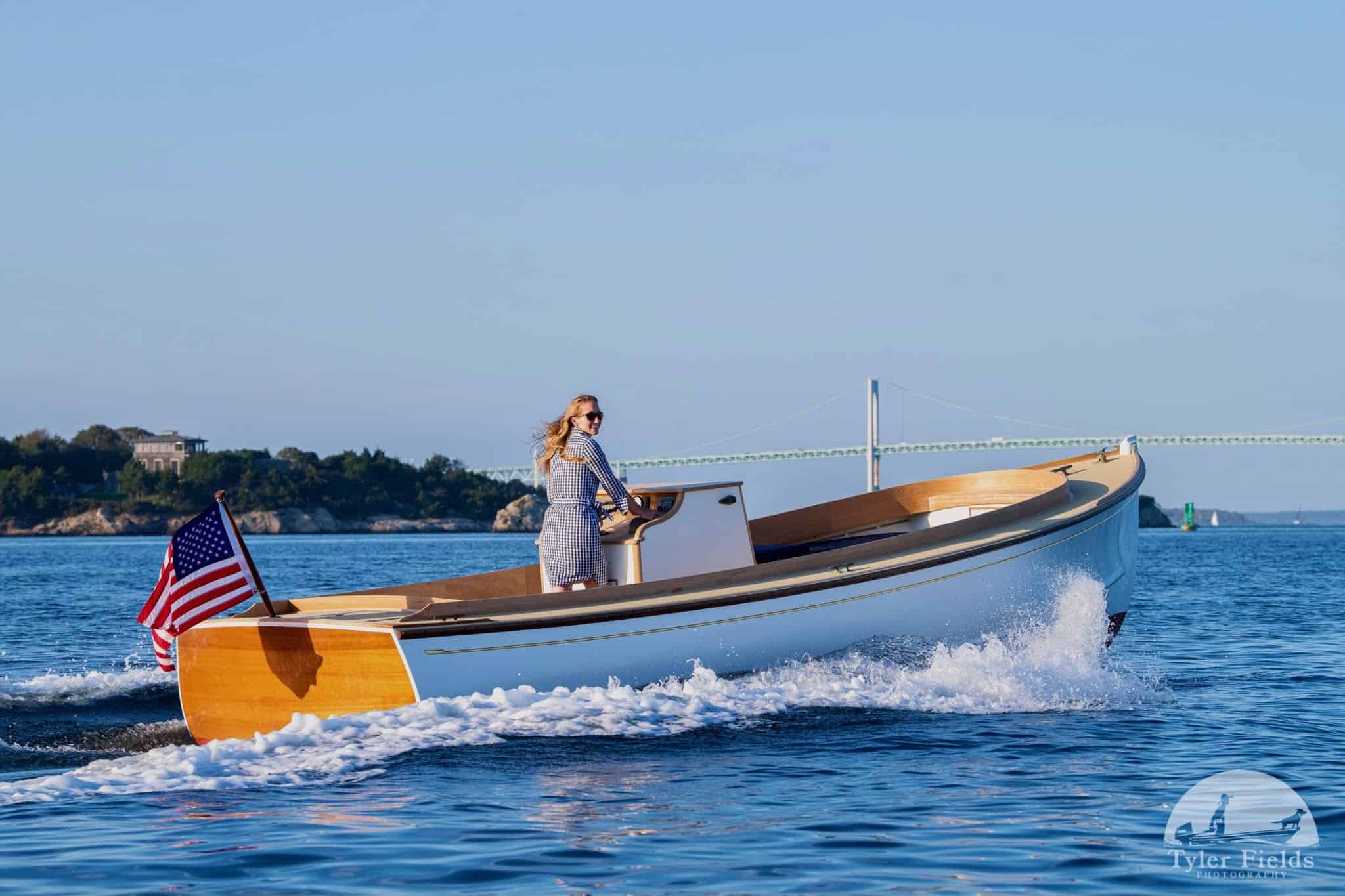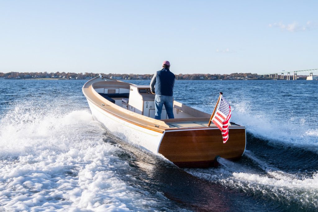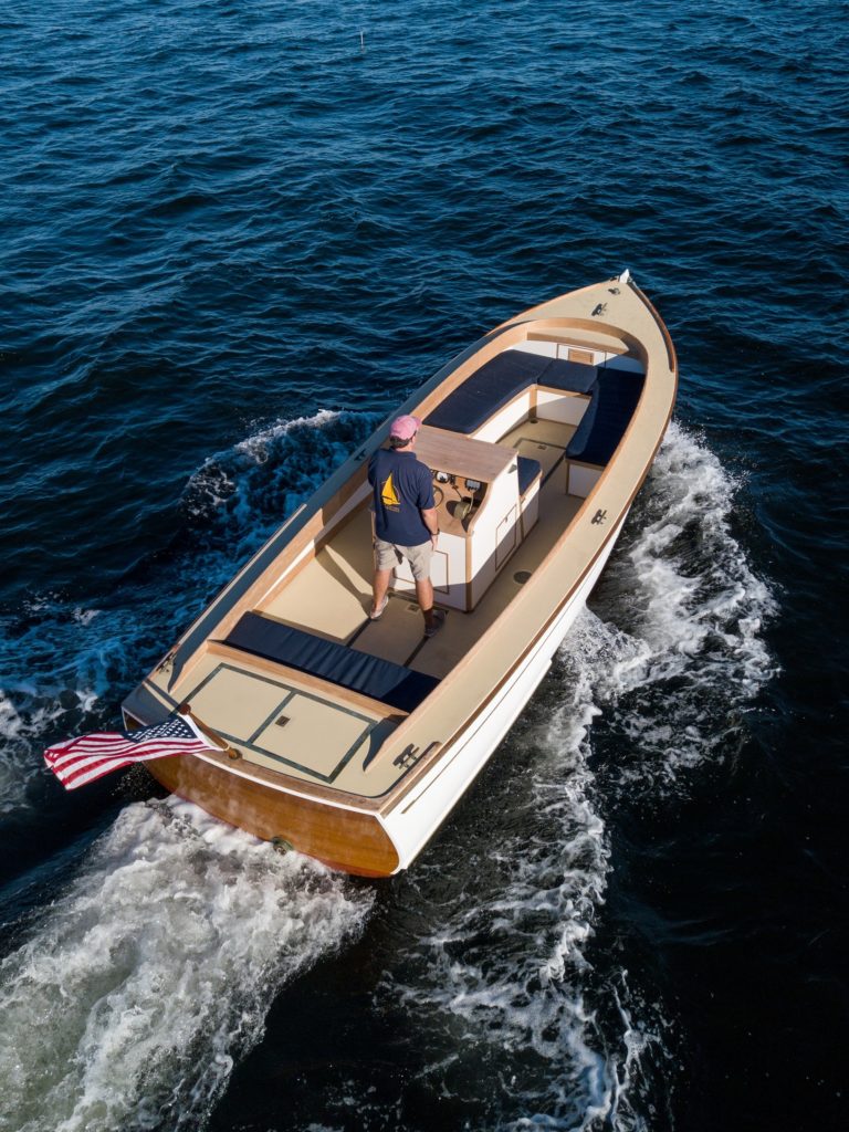 We are excited to introduce you to the East Passage 24. Drawing on the deep roots of the fishing and pleasure vessels that have called the New England coast home for over a hundred years, the EP24 will provide you with an unparalleled on-the-water experience in both comfort and style.The EP24 was designed with equal emphasis on classic aesthetics and sea kindliness by noted shipwright Walt Ansel, who brought three decades of working experience at Mystic Seaport Museum and a lifetime of experience on the water to the drafting table for this timeless Down East style launch.