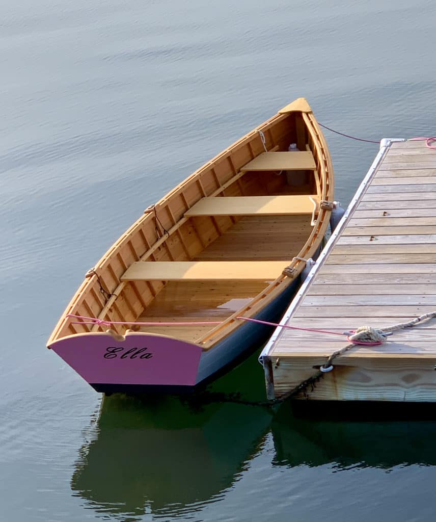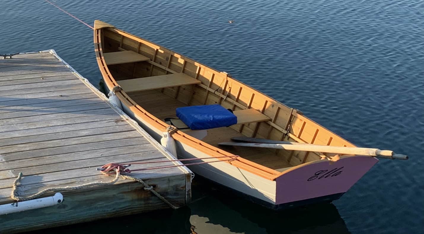 Built in 2020 from plans and the video series by Off Center Harbor for their OCH skiff, she’s a delight to row. She’s traditionally built, cedar planked over oak frames, oiled interior, painted topsides and bottom. I worked over the winter of 2020 in the garage, finishing it over that next summer. Of course, being summer in Maine, she wasn’t launched until October. Named after our most recent grand daughter, Ella, it was a wonderful project. Kudos to Havilah Hawkins (the designer), Eric Blake, Maynard Bray and the rest of the OCH crew for getting me going on my lifelong dream to build a wooden boat.Already a member? Log in herePhotos