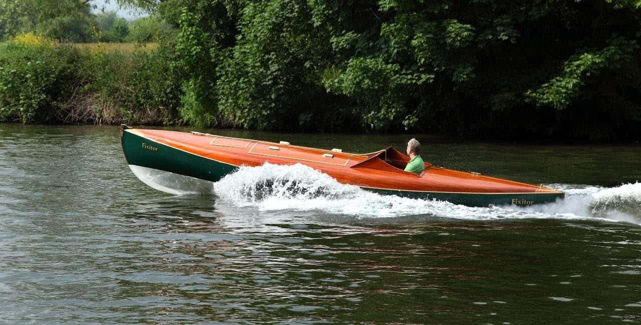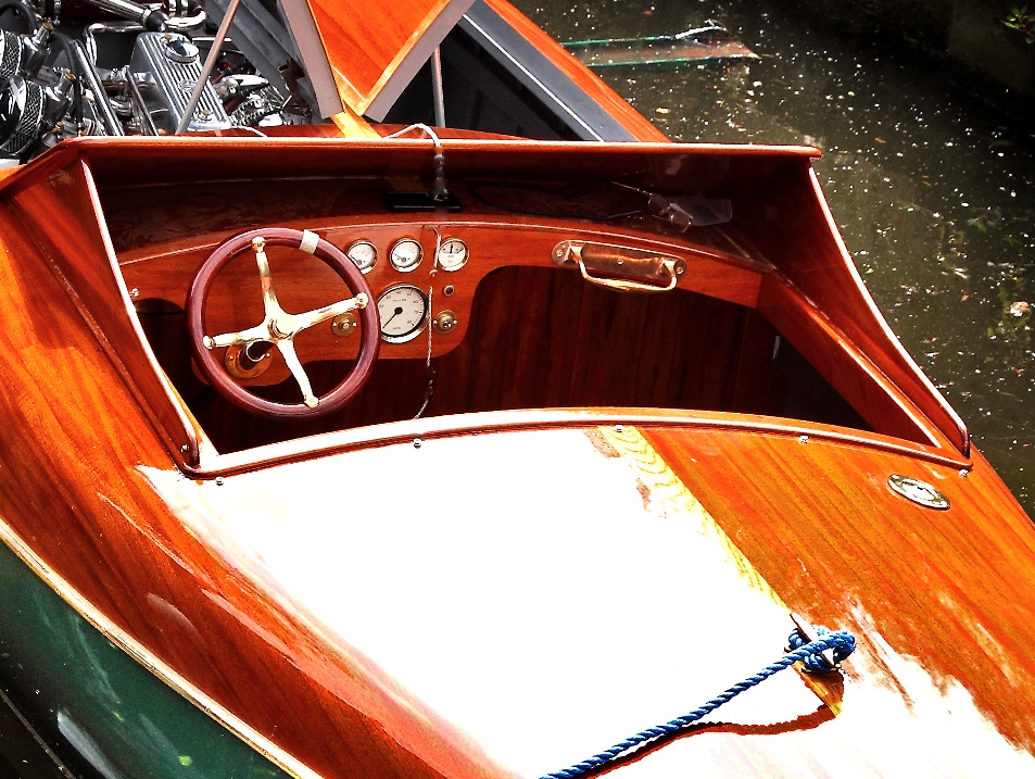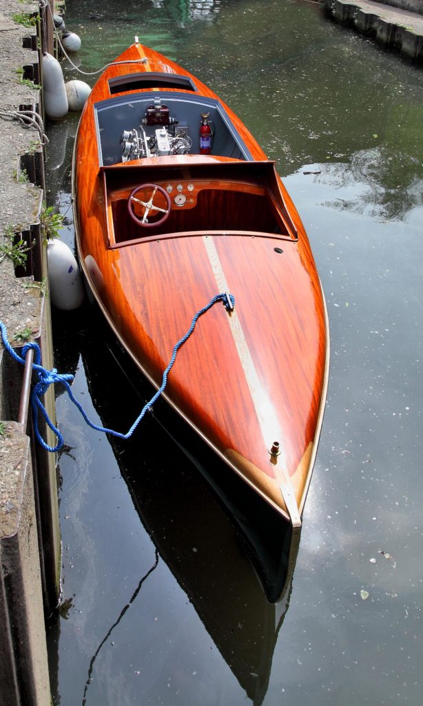 Fixitor, earliest power boat afloat in Europe. Circa 1903 and probably the only Art Nouveau power boat ever. We came across her as a serious hulk for sale at the trad boat rally at Henley, UK in 2009. It was very difficult to make anything of her, of what she had been. The majority of the mahogany was in very good condition and she was plainly very old though the mahogany hull planks were amazingly rot free and of very high quality.