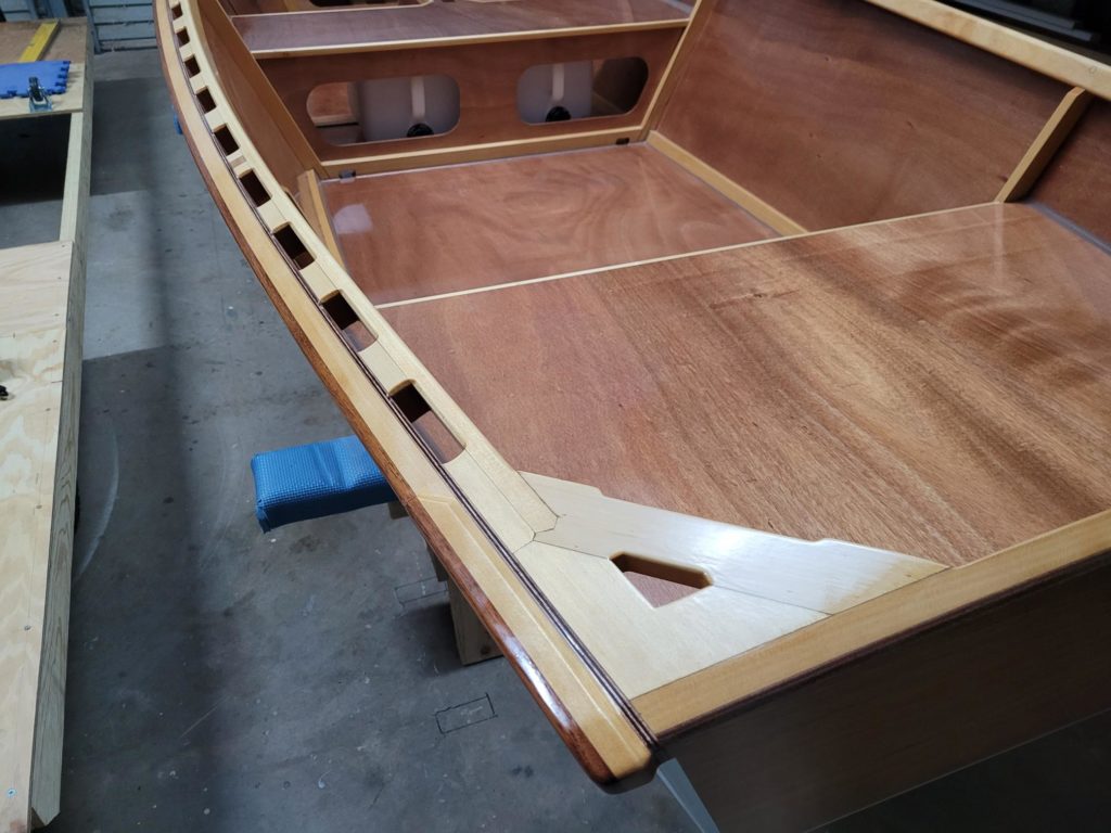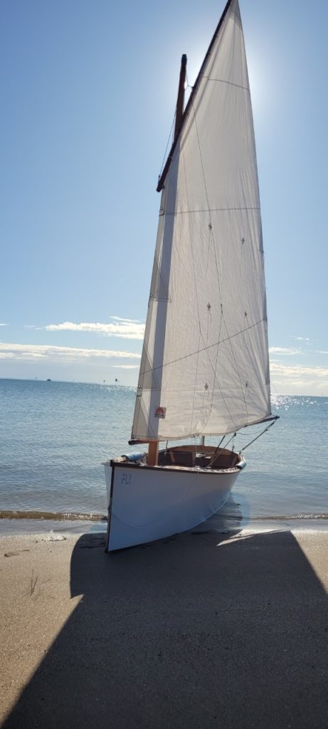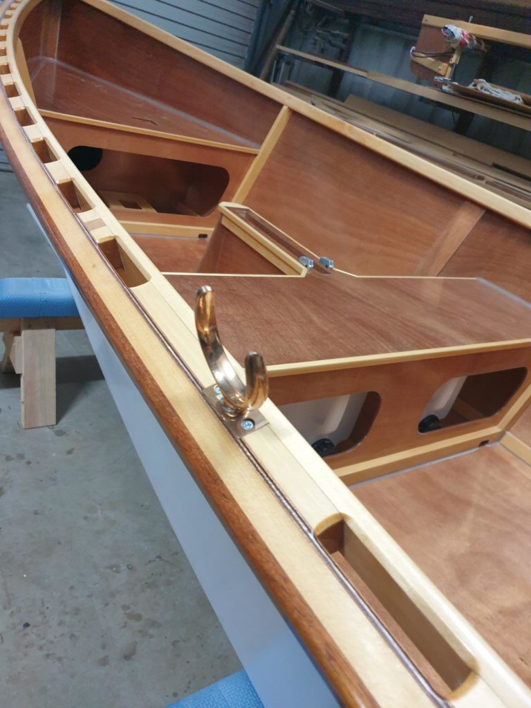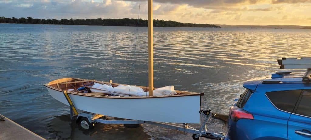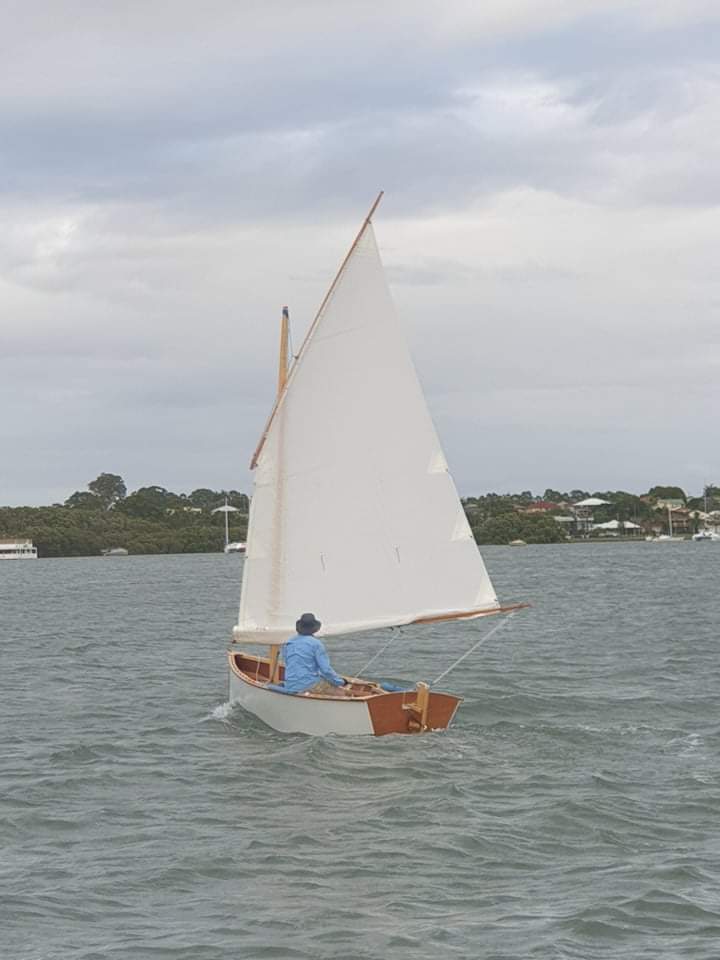 This boat is a Goat Island Skiff, designed by Michael Storer. I have always dreamt of building a timber boat. At the young age of 57 I finally found no real excuse not to start. I bought plans ply, timber, epoxy and got going. During the 2-year construction time I was nursing my dear father, The finishing details on the boat became my therapy for what we were going through. No hurry to launch. I have been sailing and rowing for nearly two years now and really love this little boat. My father’s wishes were to spread his ashes in the sea whilst drinking a good quality whisky. I’m very proud to say my three brothers and I honoured his wish in my newly finished sailing boat.Already a member? Log in herePhotos