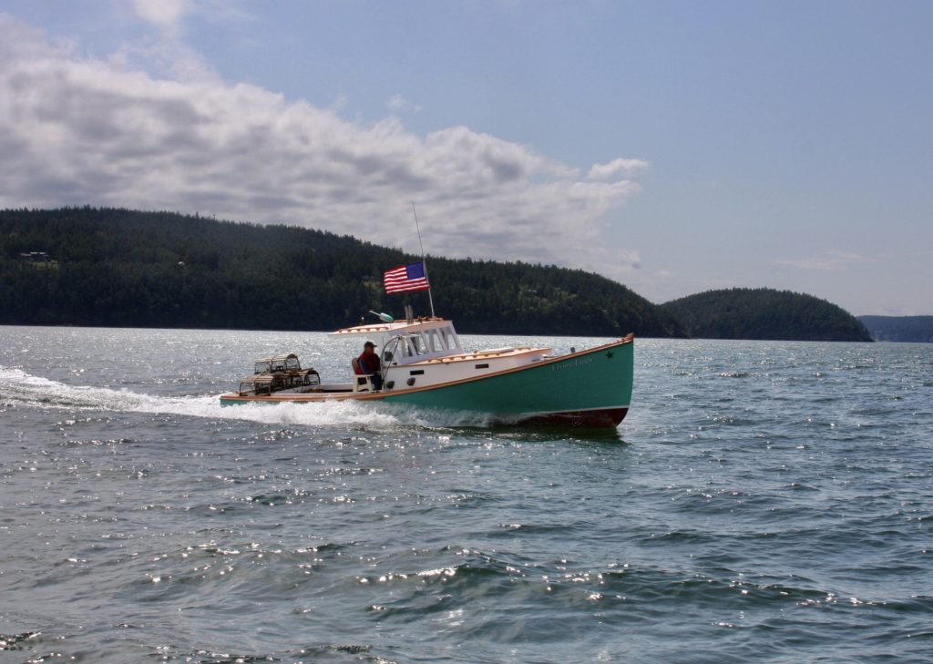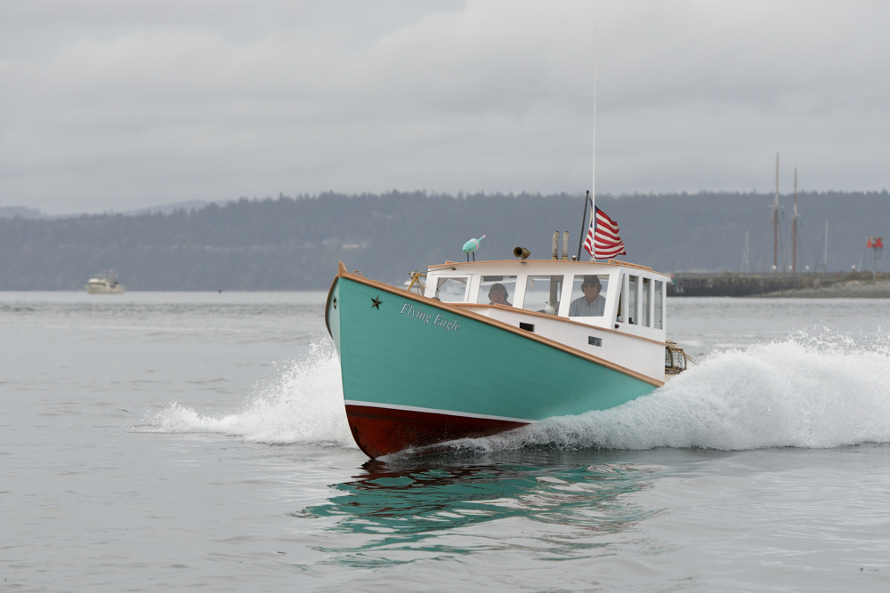 Recognized in her era as the most striking & fastest hull form of her time, this rare Maine lobster boat referred to as a “Beals-Islander”, with low freeboard & graceful sheer was constructed of cedar on oak in the skeg design & launched in 1963 by Vinal Beal. FLYING EAGLE (as orig. named & colored) is rare because most all had worked hard hunting lobster in the far eastern fetches of Maine, (this one by four well documented down east lobstermen over a 45 year duration) & were ultimately left to rot with the advent of new age fiberglass construction. The first stage of her resurrection began in 2013 at Artisan Boatworks where Rick had found her in Rockport ME, after which point she journeyed cross country 3,500 miles to the Maine-like San Juan Islands of Washington State. Upon arrival she was sporting a new stroked 350 HP Mercruiser V8 engine (replacing the “Olds”), new forefoot, tankage, bronze prop guard, etc. On an annual basis since that point, between multiple seasons of cruising the US & Canadian waters of the Pacific Northwest, Emerald Marine of Anacortes has completed several structural restoration projects, replacing floor timbers, steam bent frames / garboards, trunk cabin, stem, new prop, drive train, inclusive of much hidden modernization & safety upgrades. Now this old bird will continue turning heads while strutting her throaty dual dry exhausts at an easy 21 knots!Already a member? Log in herePhotos