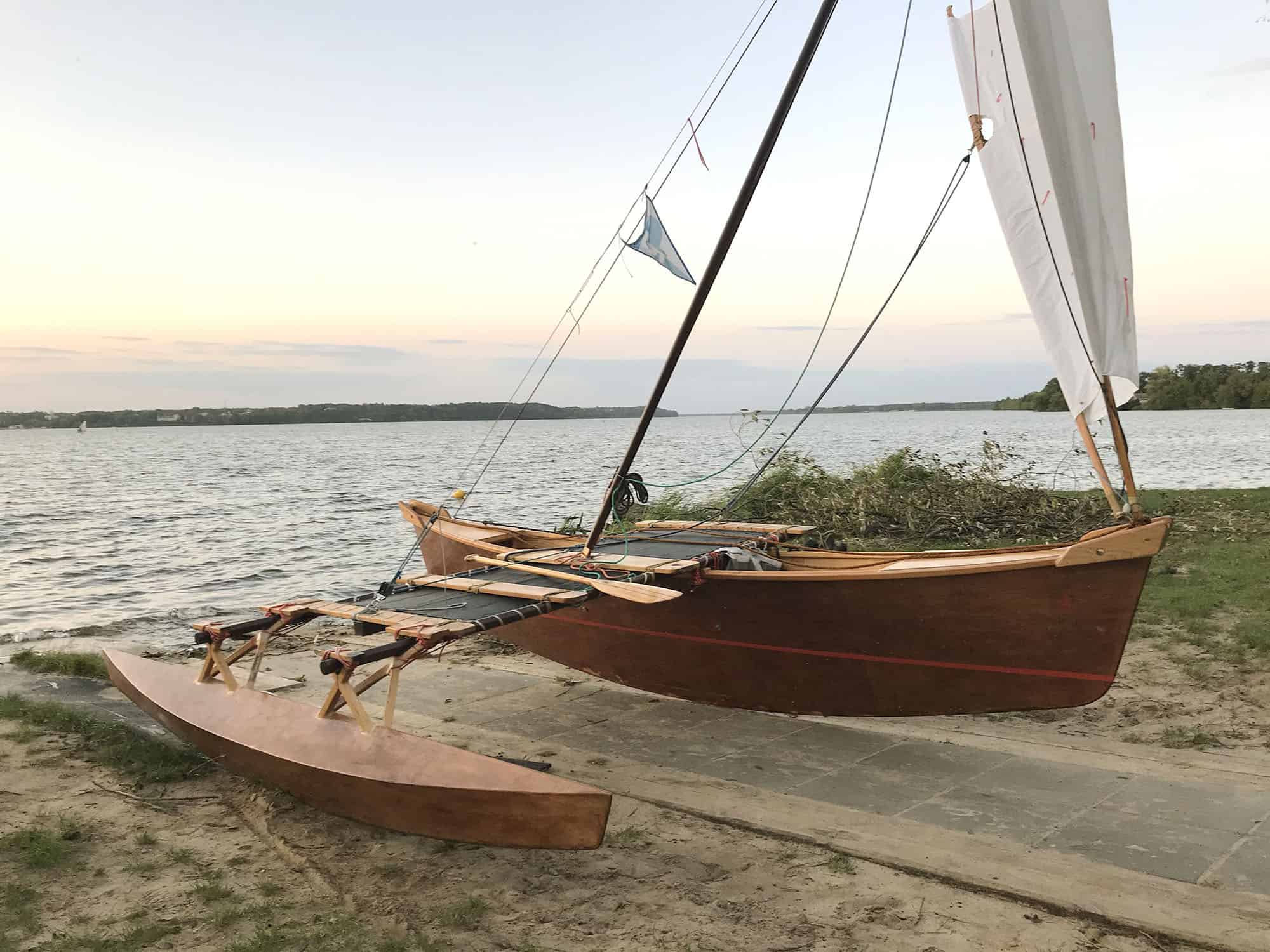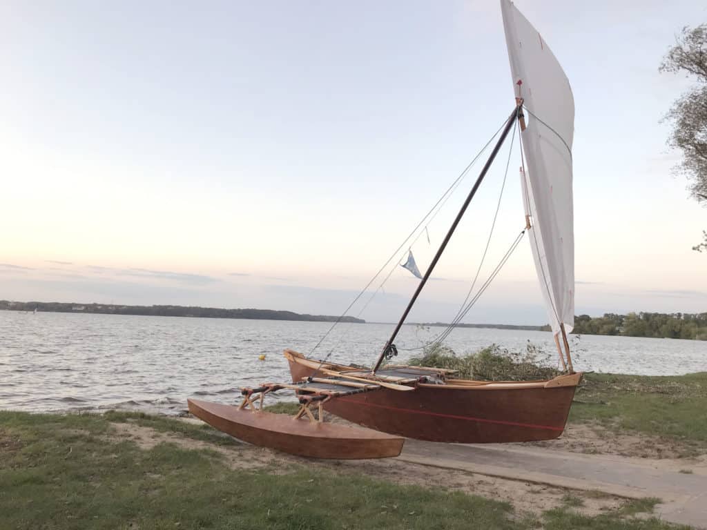The PJOA FOLK proa is aimed at “Spartan” dinghy cruising on sheltered waters, in winds up to 3 Beaufort. The design is as close to traditional bots from the islands of Micronesia as possible, where they were and are used for crossing lagoons. The differences are dictated by modern materials applied which are available in our region and usually represent better parameters.