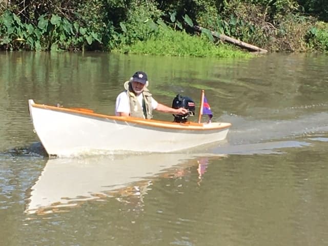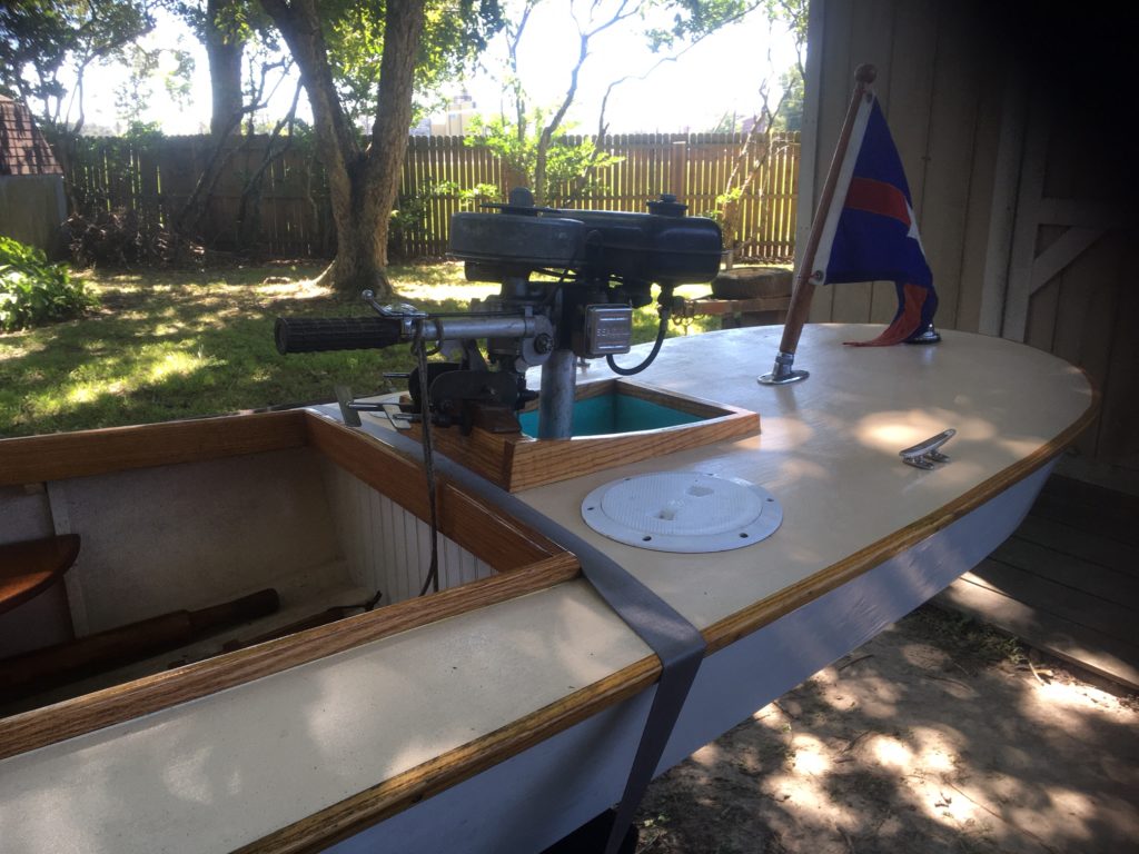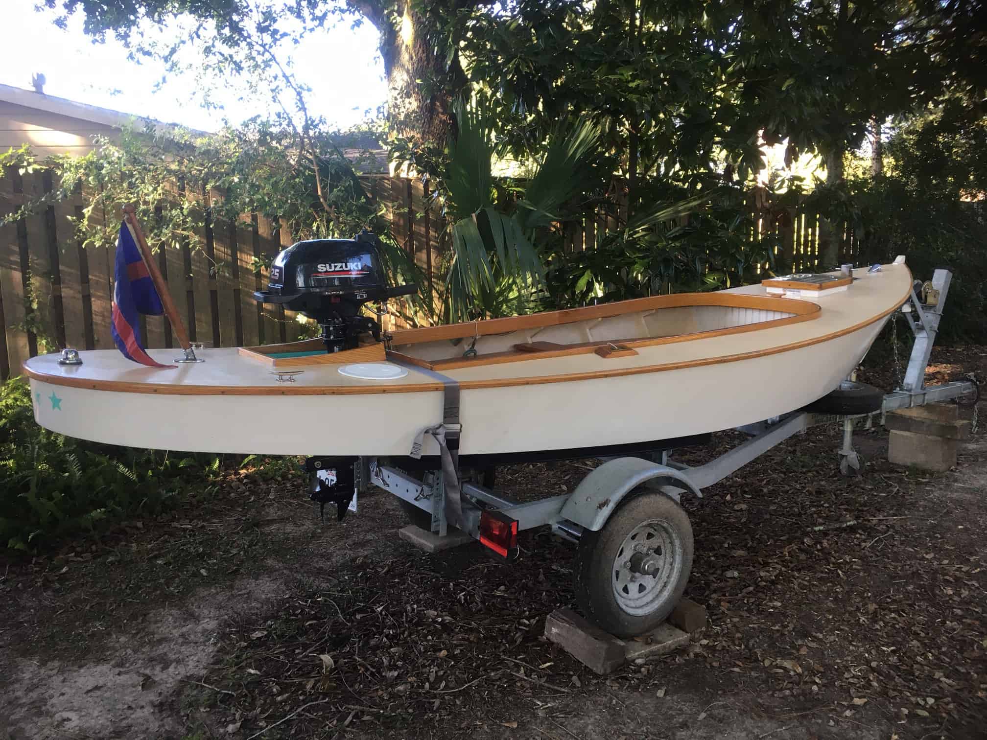 As it all turned out, the little skiff moves easily with a small outboard and proves to be safe and stable. Much fun for little sailors.