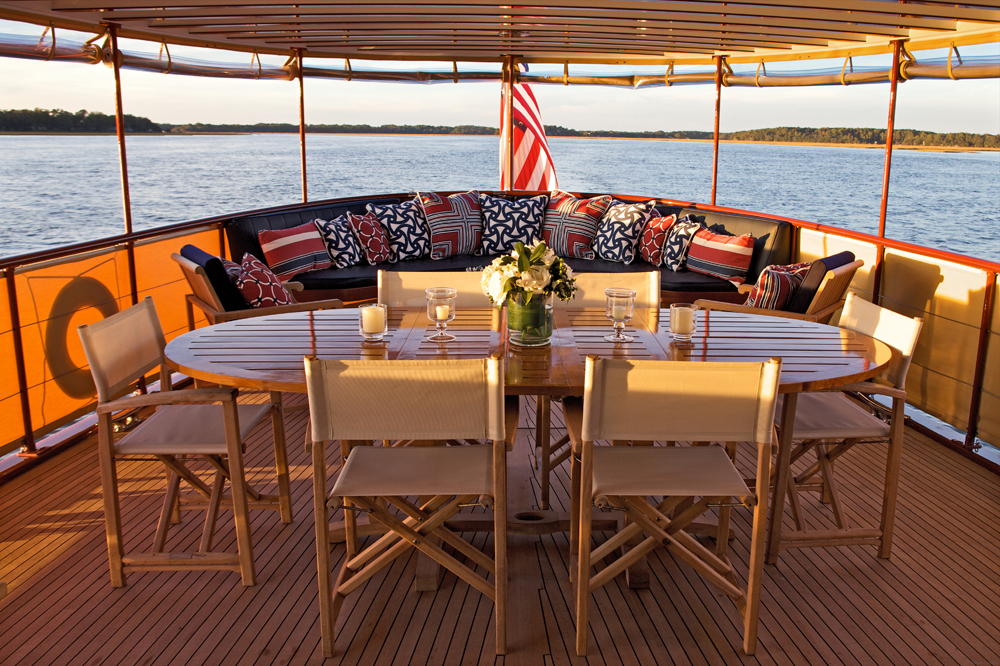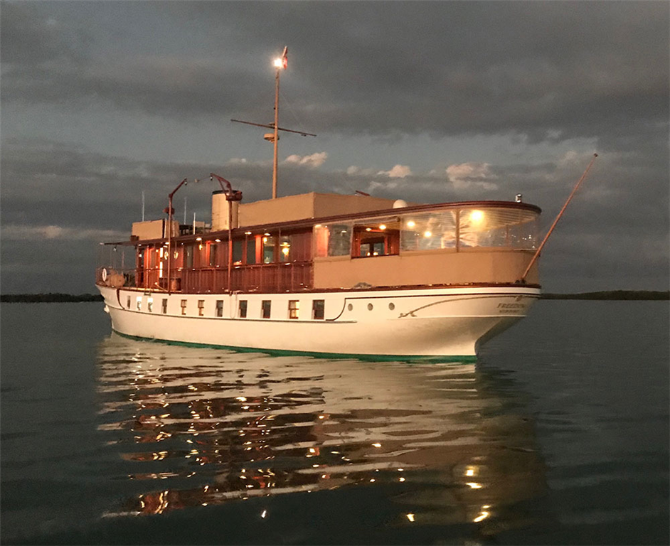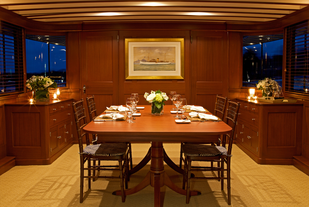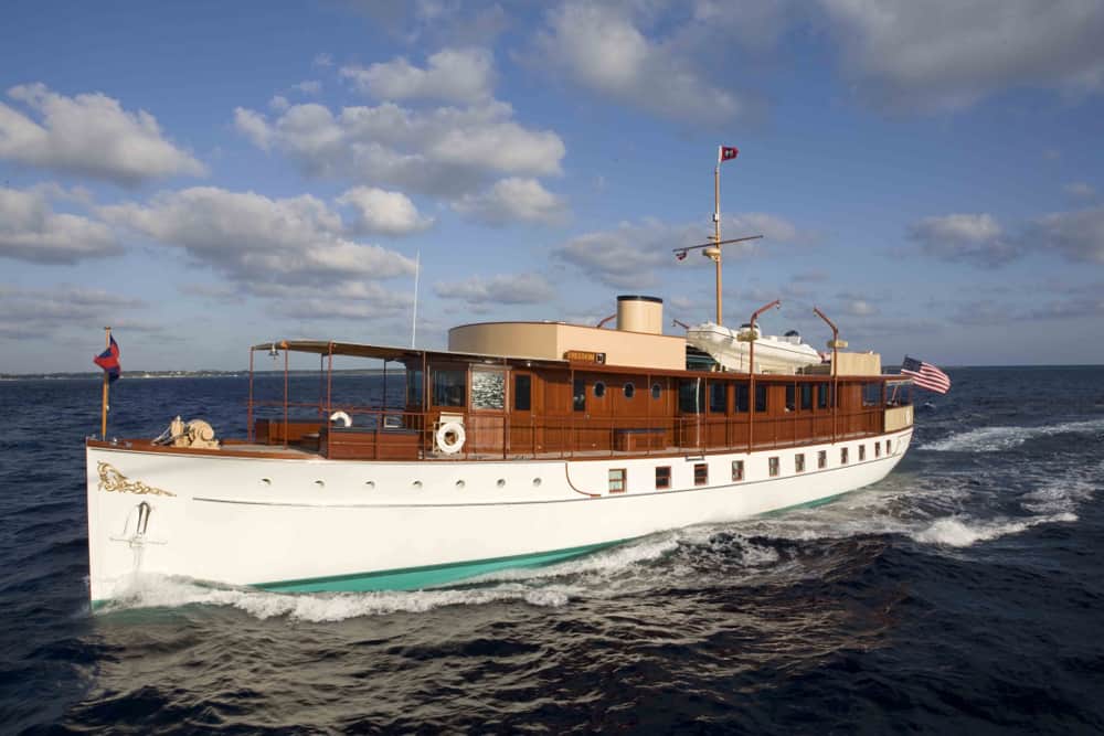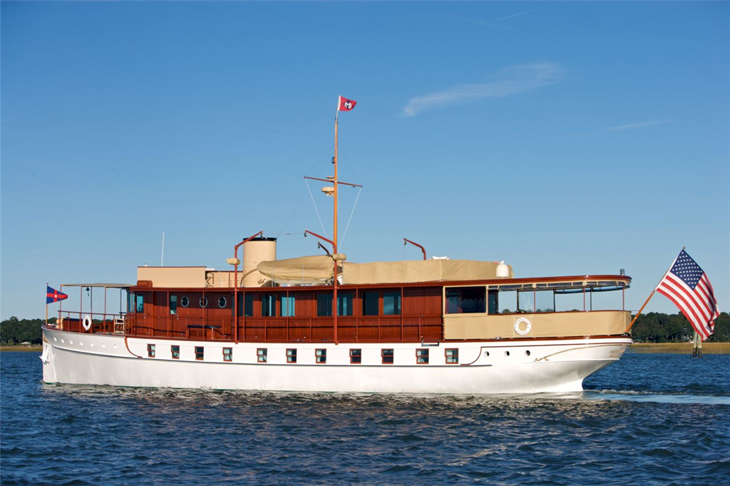 FREEDOM is a 1926 104′ Mathis-Trumpy fantail motor yacht. She underwent a full keel up rebuild/restoration at our yard between ’04-’09. She was launched on the 150th anniversary of our country’s independence on July 4th, 1926. Her second owner, Mrs. J.P. Donahue the daughter of F.W. Woolworth, was the wealthiest woman in the country when she owned the yacht.