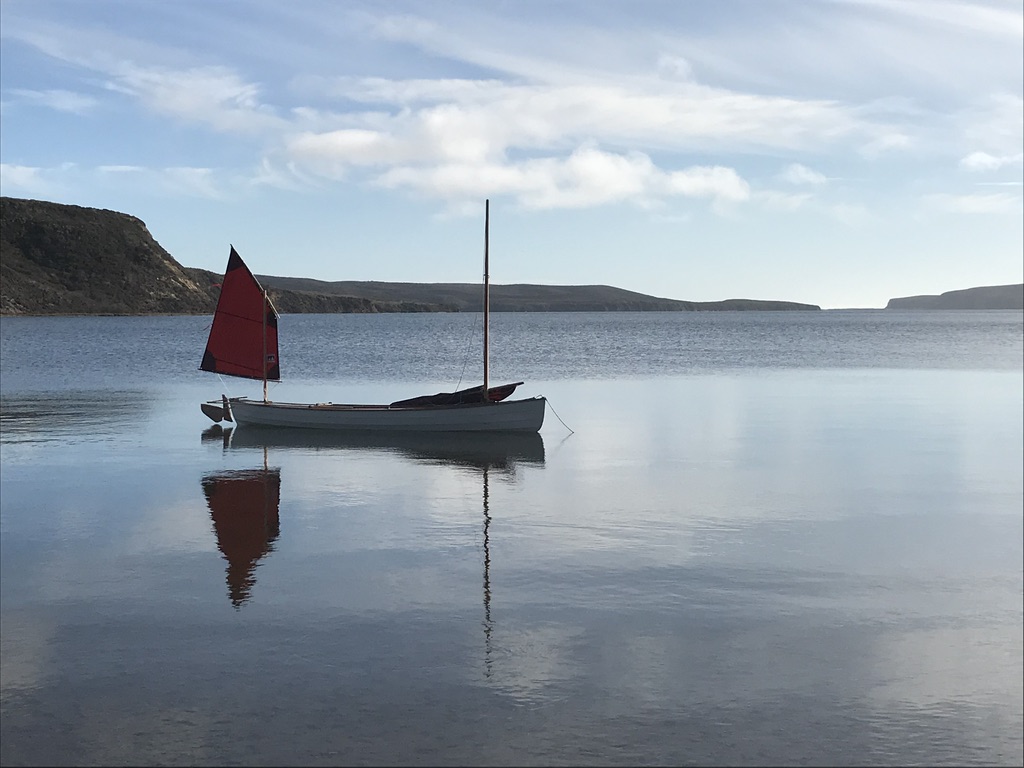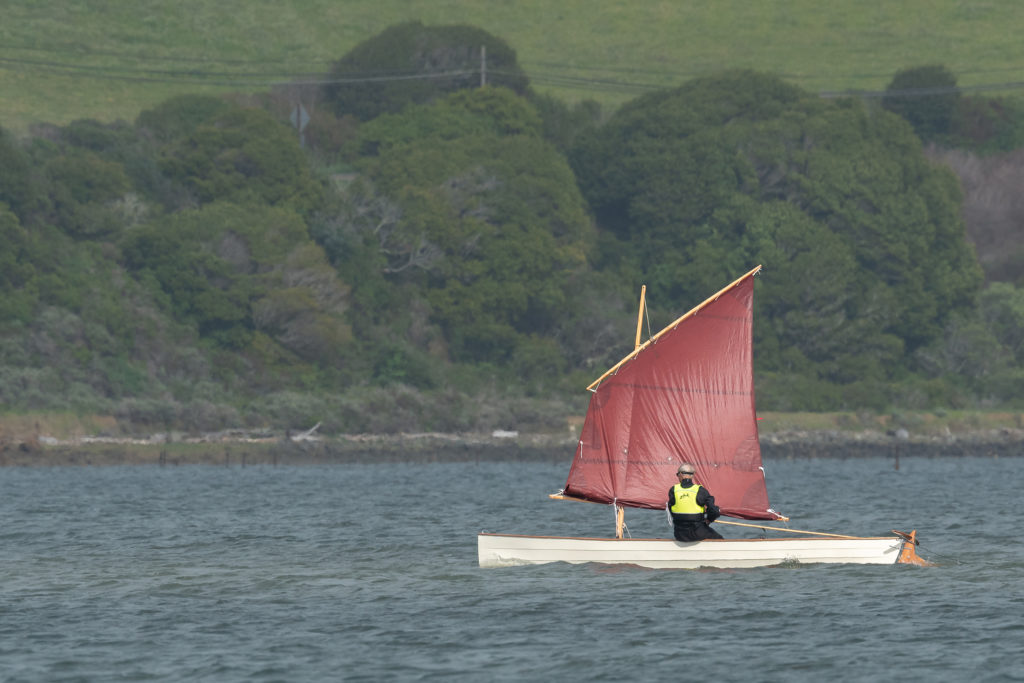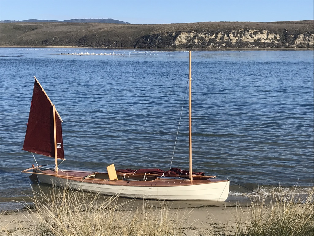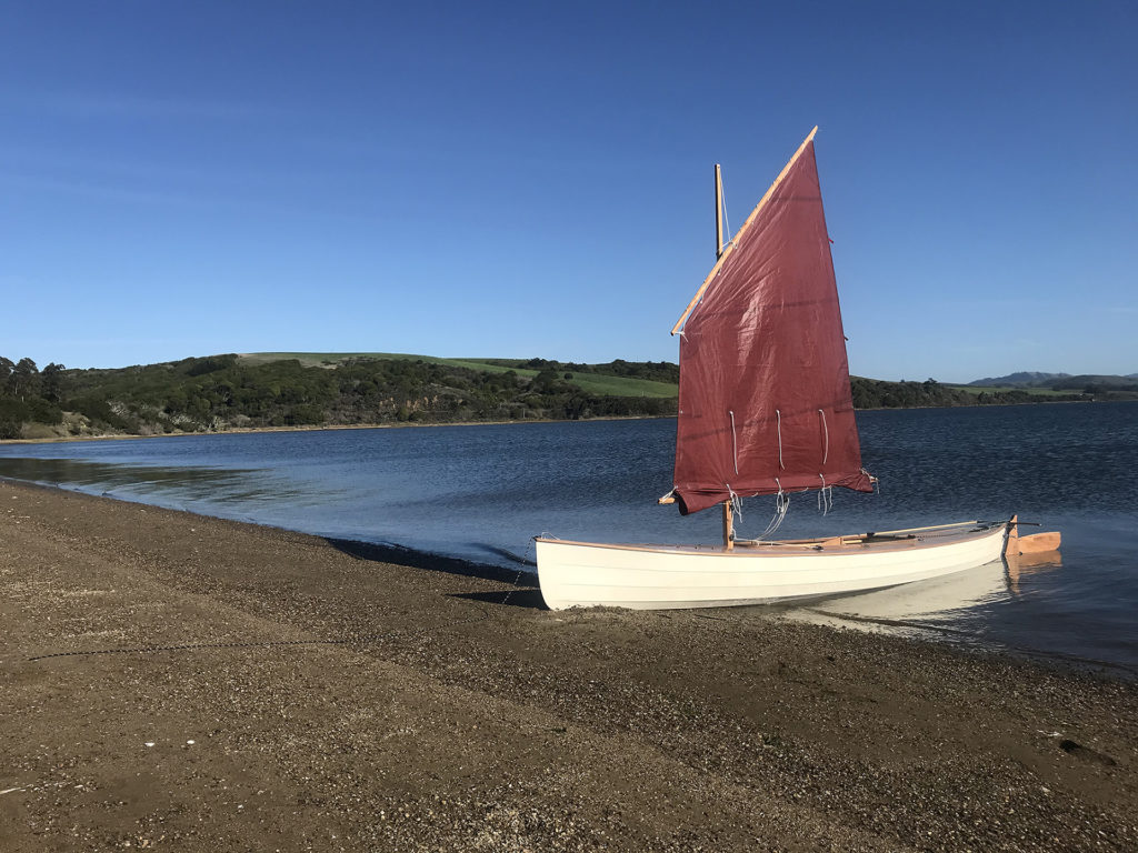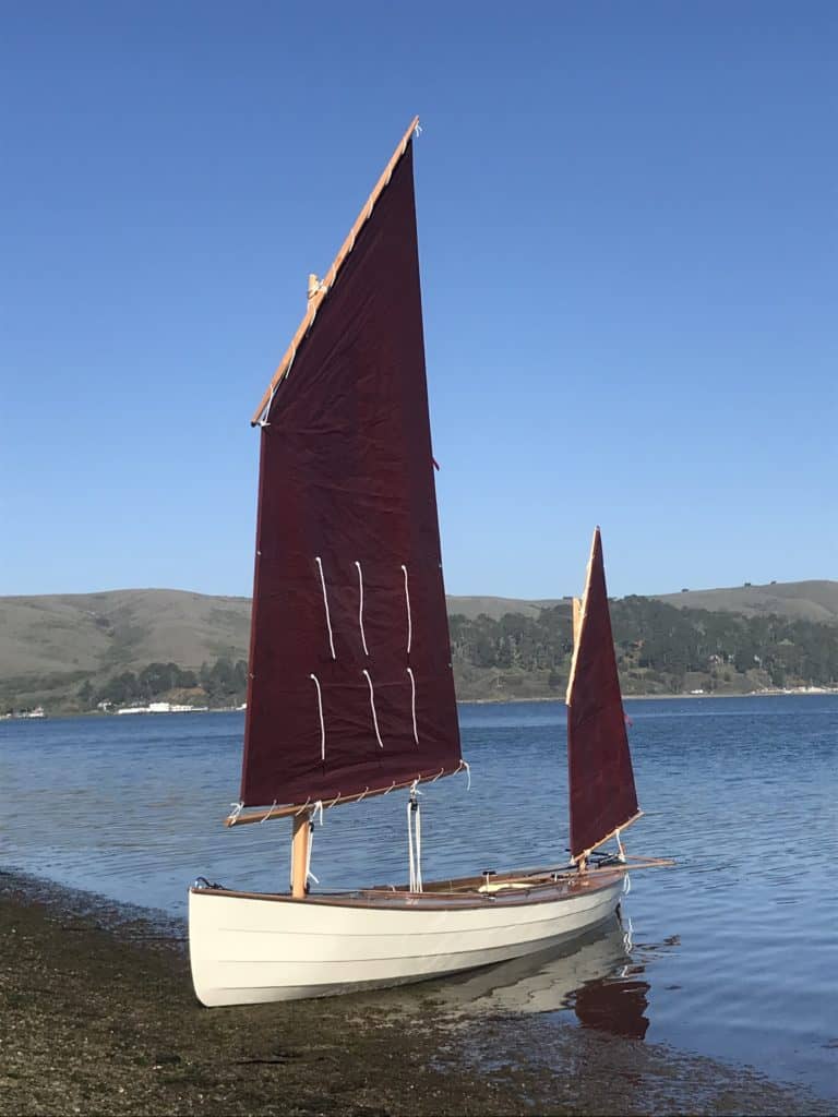Sail- and pedal-powered sailing canoe for cruising.The design takes its cues from classic sailing canoes of the late 19th century. Dillon has added a higher volume hull with fuller ends for increased carrying capacity, stability, and performance under sail. The hull design includes watertight compartments fore and aft, watertight storage forward of cockpit, and stowage bins port and starboard in the cockpit that double as support rails for the seat. The cockpit extends under the aft deck, and may be used as a berth for the crew. The boat is powered by a lug yawl rig, which is traditional to the type and easy to manage, too. She can be easily reefed all the way down to a simple lug rig with the mast moved aft.