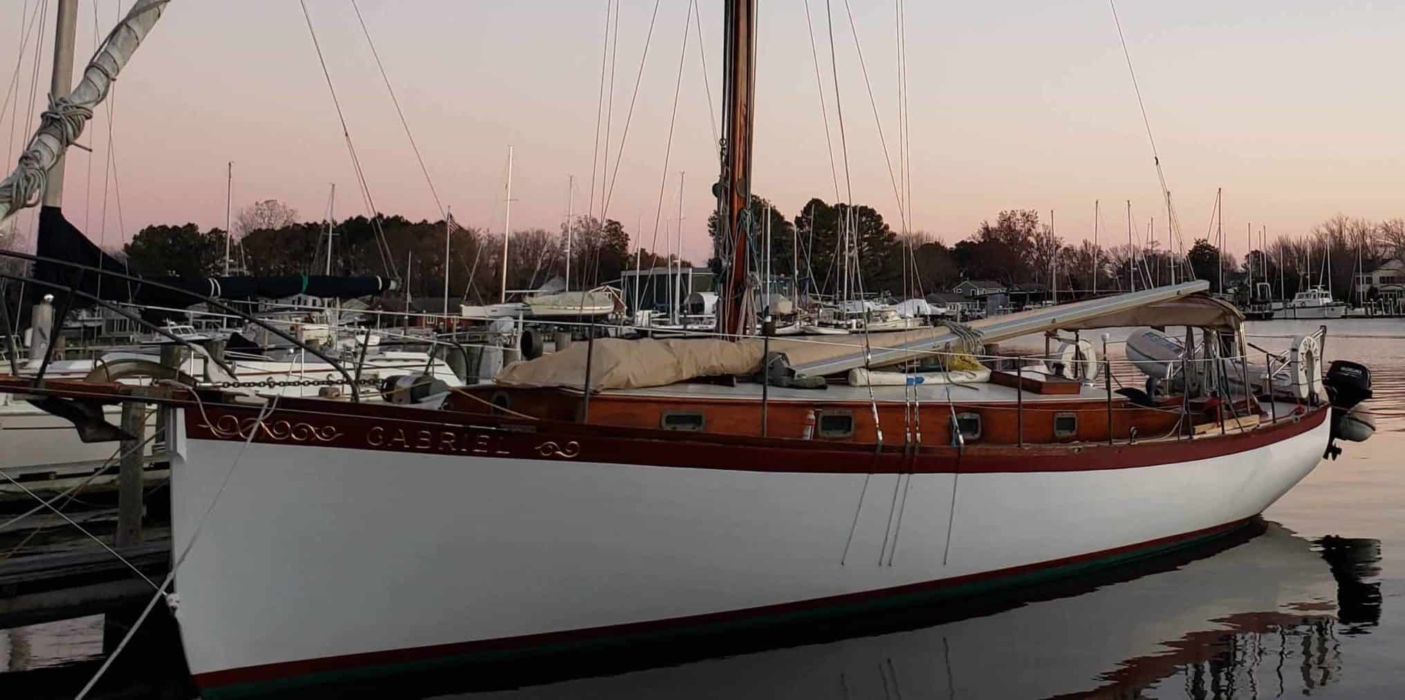 Designed by the legendary naval architect Sam Crocker, and built in 1961 by his son Samuel Crocker, GABRIEL is a 38′ sloop equally excellent for racing or cruising. Previous owners spared no expense to recreate this truly beautiful yacht, above and below deck, to make her a joy to sail. In other words, a very classy classic!Already a member? Log in herePhotos