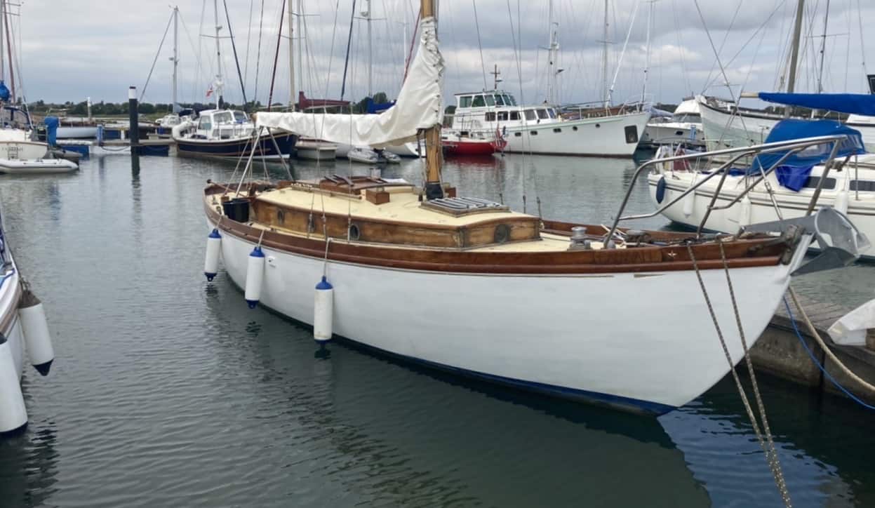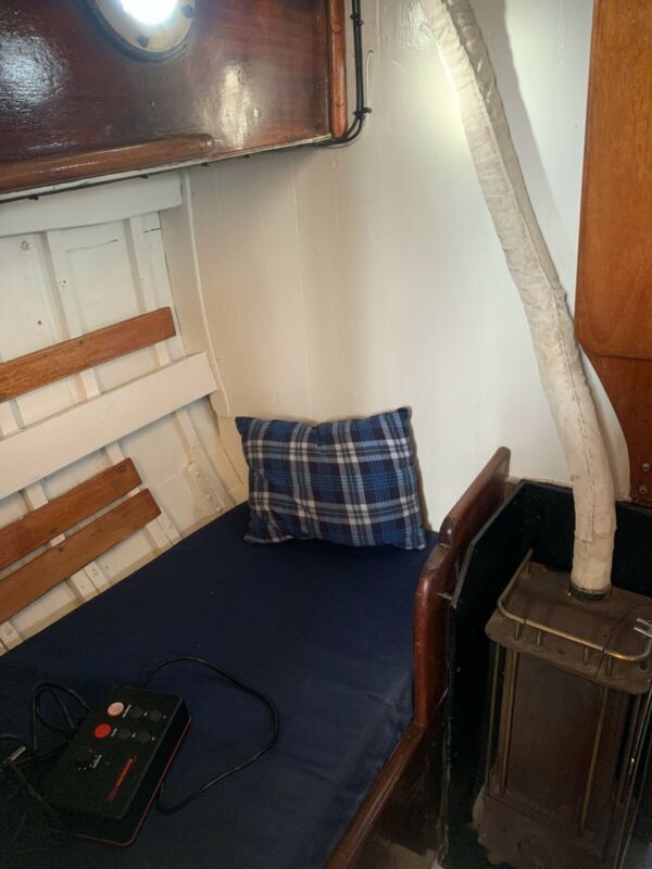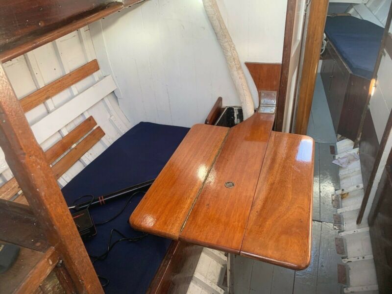 Her hull is carvel constructed from Mahogany and Oak. With a deck and coach roof of Tongued-Red pine, her toe rails and doors are Teak and keel is English Elm blasted with lead.