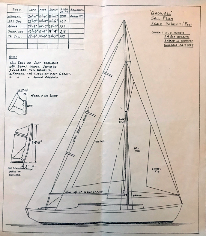 Gadwalls’ Mast and Boom are the original, hollow pine mast and a solid boom. She retains her original screw roller reefing system and her original winch and handles.