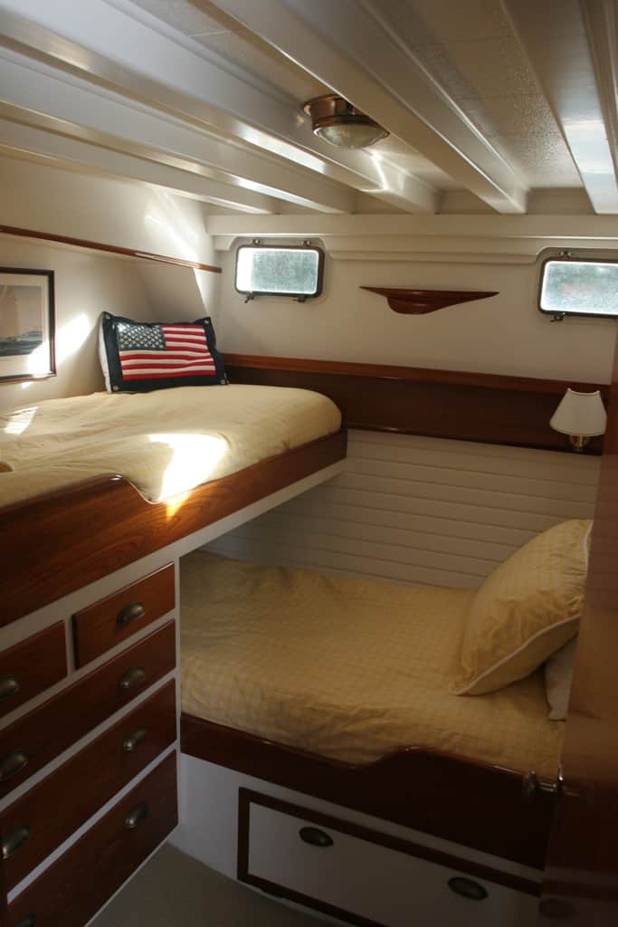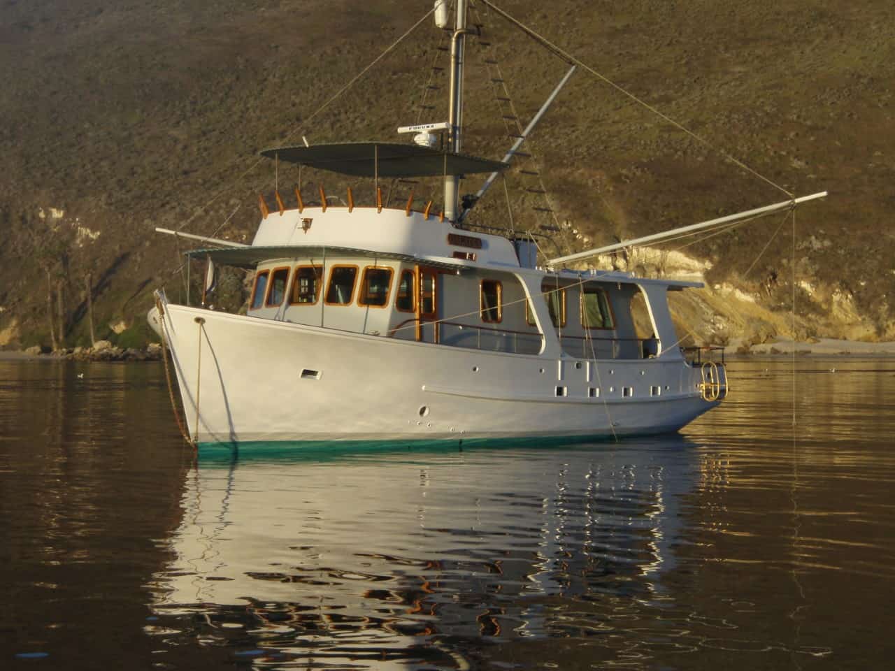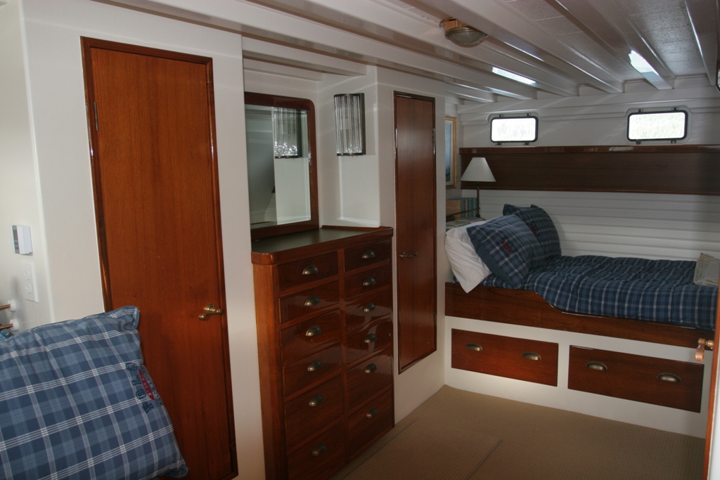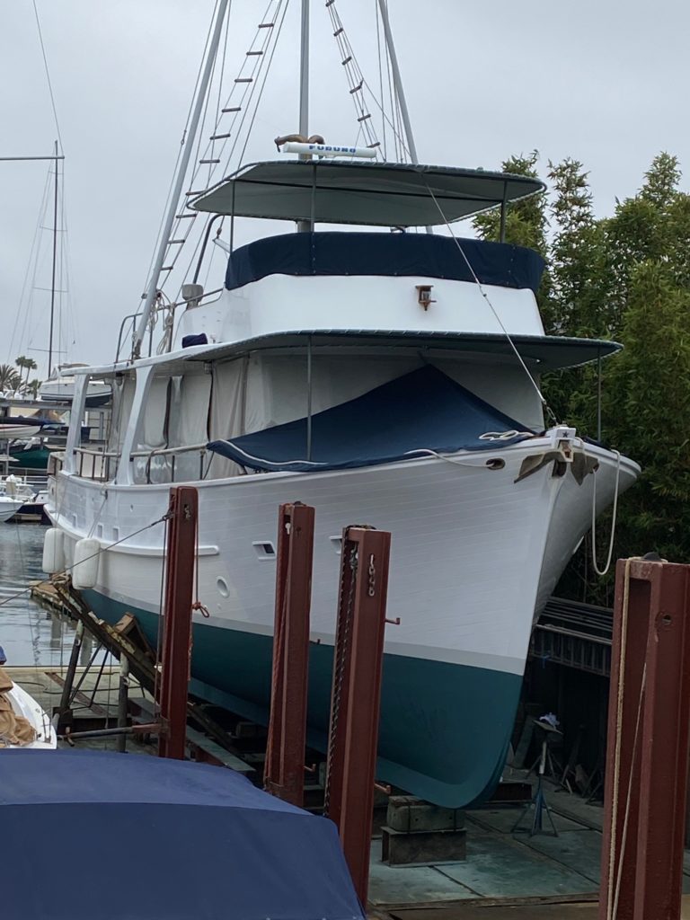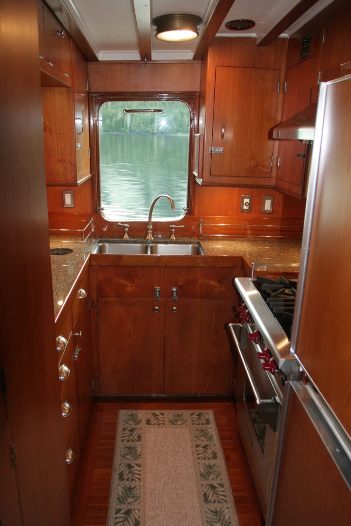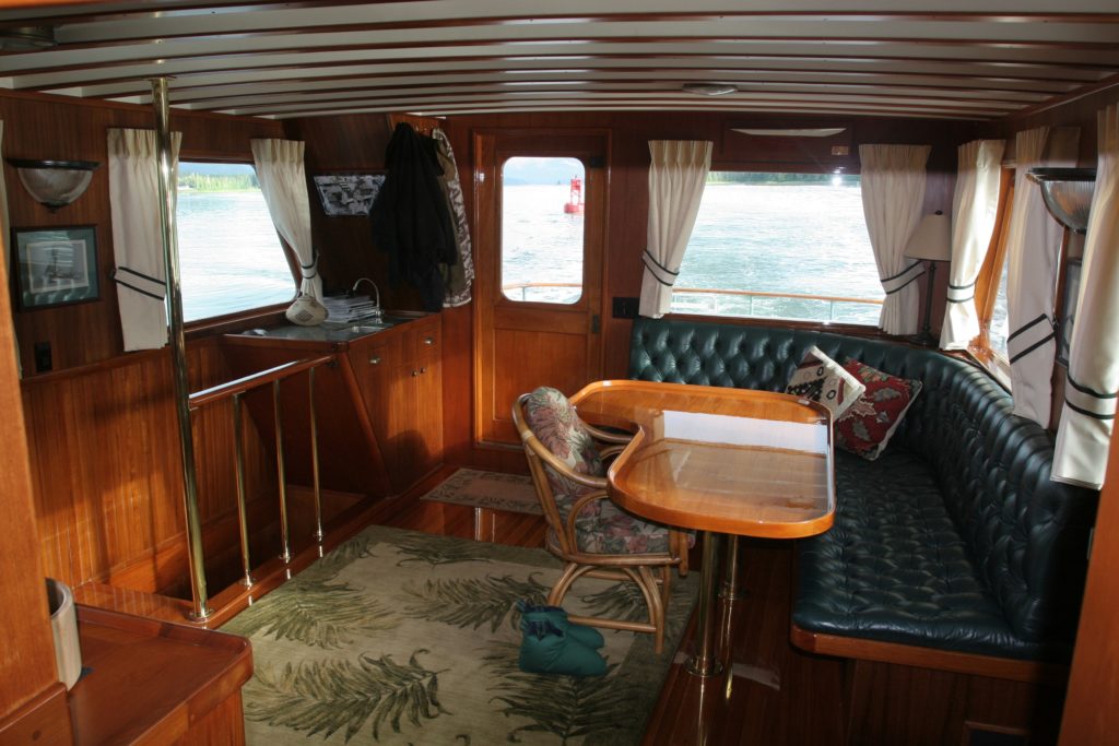 Single engine dry-stack west coast seine boat hull form built as a yacht in 1967. Fir on oak, Monel fastened. 1800 gal fuel/1000 gal water. 5.3 gal/hr. 2,500-mile range. 110,000lbs disp; 12,000lbs ballast. Extensive cruising past 20 years between Alaska and Mexico. Built for cartoonist Bill Hannah (Flintstones, etc.) Two yards built 11 boats of this type (1957-1967) 47′ to 65′ length. They were the first series-built heavy displacement trawler yachts. Early boats went to SoCal offshore sailors retreating to power. Simple engine room/systems. No AC, washer/dryer, bow thruster, stabilizers, or water maker. 6KW Northern Lights runs 3hr/day at anchor. Underway, Lima brushless cruise gen produces 6KW from main engine PTO. Outback 3KW inverter. Webasto diesel boiler heat system. Wolf propane range. Easy motion at sea, will heave-to at 600/700 RPM (144 prop RPM) with Simrad AP70 holding course @ 1.5 – 2kts. Three double cabins, three heads. Pilothouse, galley, and Salon on one level. Large covered aft deck, comfortable flybridge with large boat deck. Normal cruise is 8.75 Kts @ 1450 RPMAlready a member? Log in herePhotos
