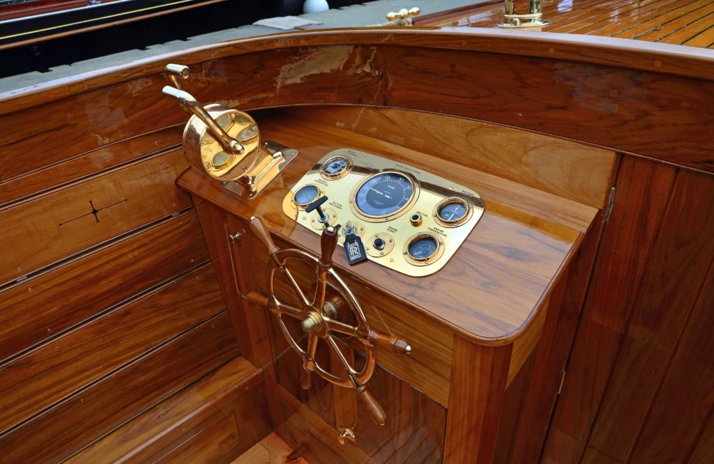 The entire superstructure and interior has been retained and refurbished. The instrument panel, morse control, all deck, cabin and head fittings are Welsh gold plated for easy care.