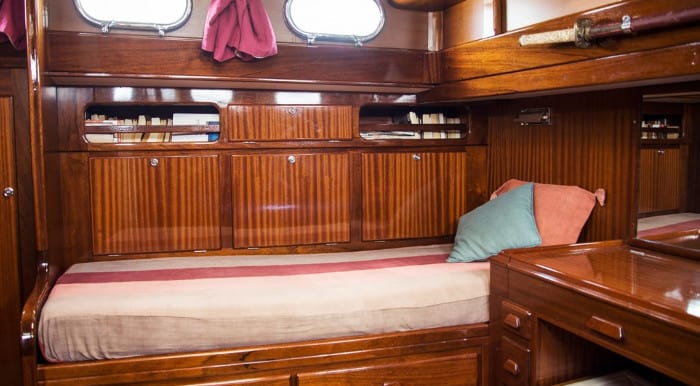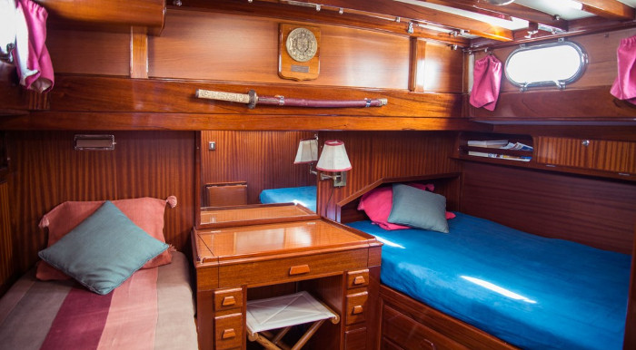GIANNELLA II is a wonderful classic sailing yacht ideal for family cruising in absolute comfort. She has won many regattas including The Voiles de St Tropez and Conde de Barcelona. She features lovely warm interiors and is easy to sail! The first owner, an Italian, commissioned the construction of GIANNELLA II under a double signature.First the plans were designed by Eugene Cornu, a famous French Naval Architect, known for his extreme severity about quality of construction. Second, she was built by Cantieri Sangermani, considered as one of the best wooden sailing yacht shipyards in Europe. The result is a perfect classic sailing yacht, easy to sail and comfortable for long sea passages.