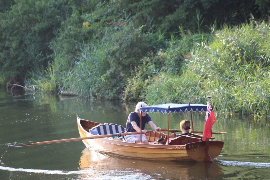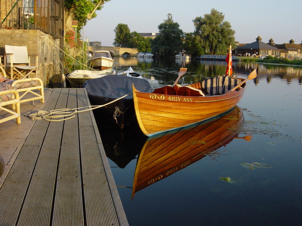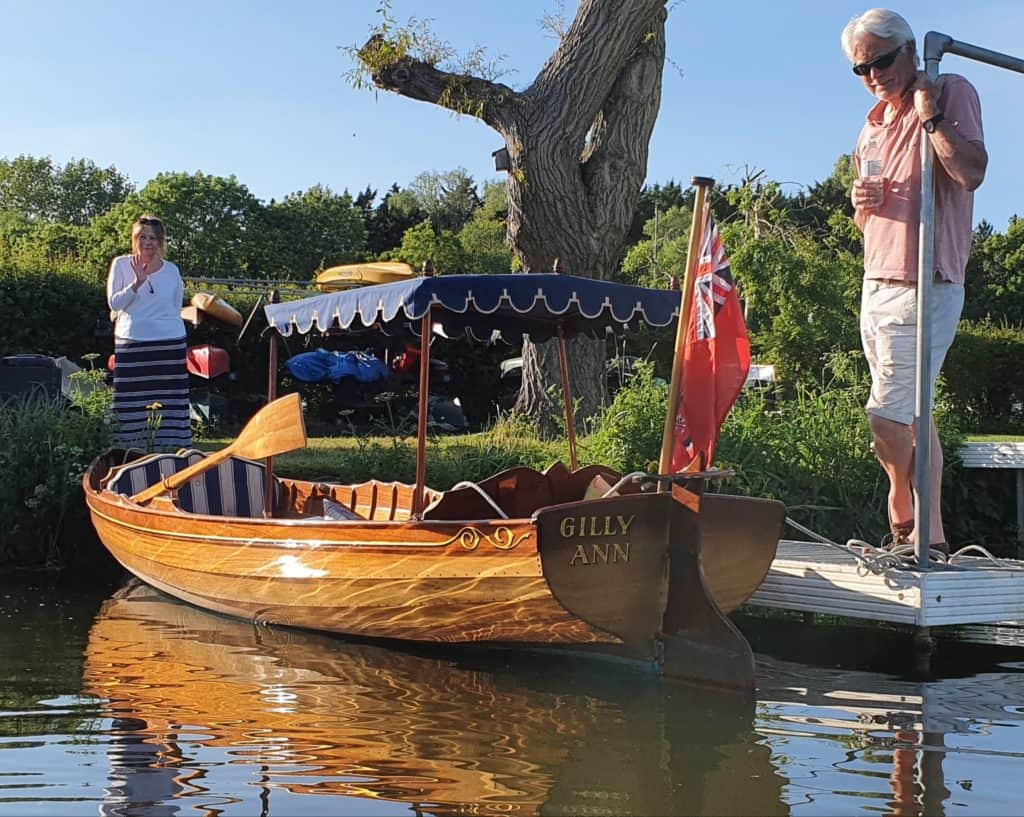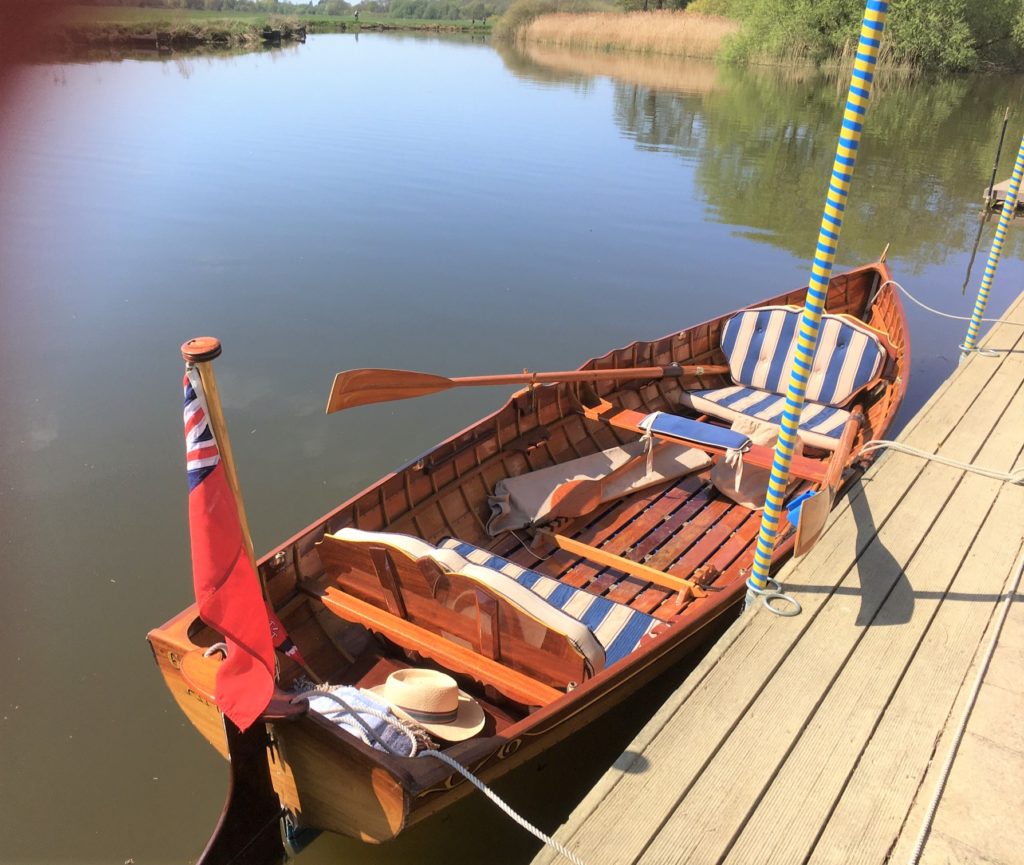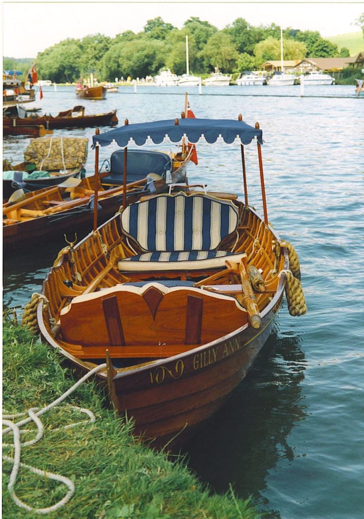 Traditionally made mahogany clinker on an oak frame picnic skiff with awning in Victorian style. She is has a removable folding picnic table, wine glass holders within reach of every seat and room for a hamper and two couples comfortably. 25th anniversary this year! Built and used on the Thames initially but now happy at home on the river Great Ouse in Cambridgeshire.Already a member? Log in herePhotos