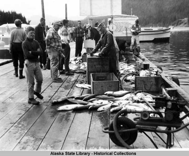 Fishing The Golden North Salmon Derby is a fun filled summer fishing event that began in 1947. People from all walks of life in the community participate. Families, people (young and the young-at-heart) that love to fish, and even some who don’t but want to support the purpose of the Derby spend the weekend in pursuit of Kings and Cohos and the chance to compete for the prizes generously donated by local businesses and individuals. Those that turn in fish that are not competing for the top “weightiest” fish receive thank you prizes in appreciation for providing these fish to sell for scholarships for Juneau’s young people. The proceeds from the sale of these fish minus the expenses of cleaning and handling are given to the Territorial Sportsmen Scholarship Foundation.