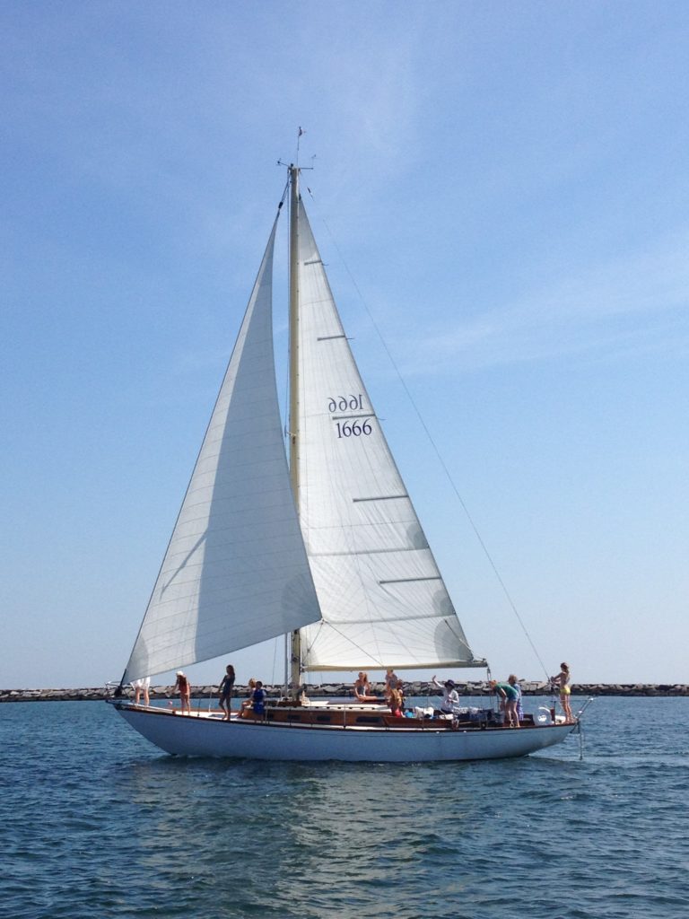 Gyre is a modern version of a classic, mid-60s racer. It was originally commissioned for the Bermuda Race by a family in Connecticut. It was rescued from life on the hard, and with an extensive refit by Rockport Marine, the cockpit was expanded to allow for the large family of its current owners to share the boat with friends and relatives. With her suite of sails from Downs Sails in Danvers, MA, and the conscientious upkeep from Crosby’s Yacht Yard, she remains a competitive racer.Already a member? Log in herePhotos