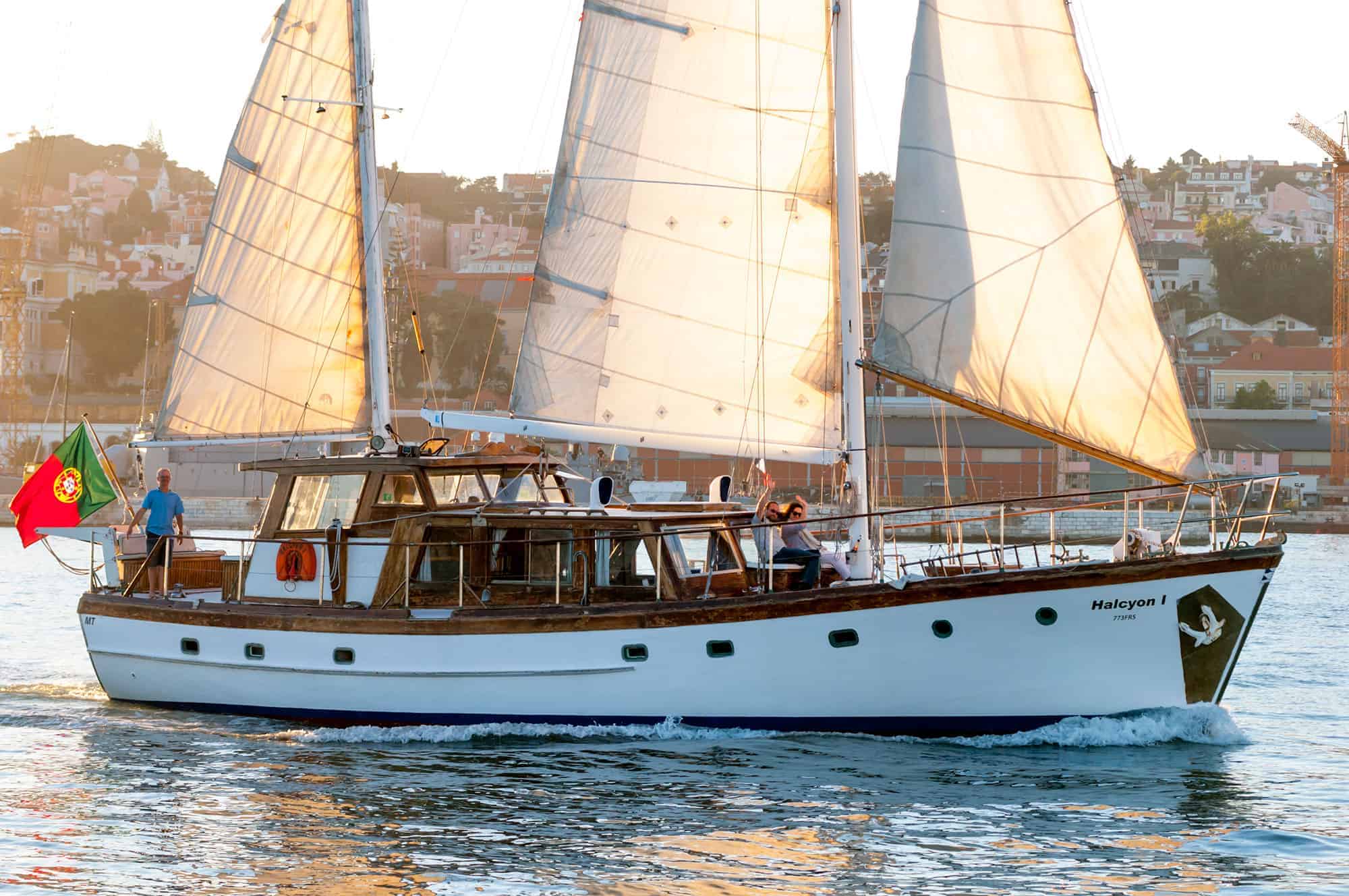 Halcyon I is a 55 feet wooden motorsailor, the last of three boats built under a G. L. Watson’s plan, between 1968 and 1970, in Belem, Lisbon, Portugal. Teak over laminated oak. It was Loyd’s 100A1 certified until 1986. Is powered by two 0.400 Leyland six cylinder engines. Can sleep 7 in four cabins plus crew. Available for charter.