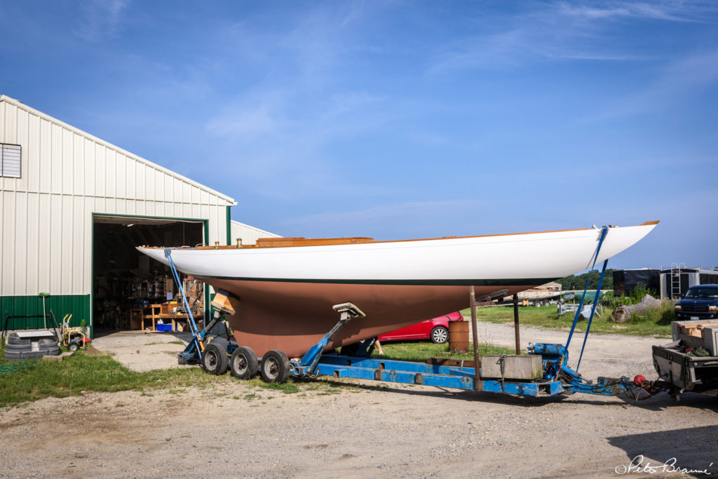 Invader was built in 1930 by Wm. Fife III. She was lost in The Hudson River in the 1960s while under tow. In 2013, unable to find an 8 Meter suitable for restoration, Hunt Lawrence commissioned Wooden Boatworks to recreate Invader. She was launched in 2015.