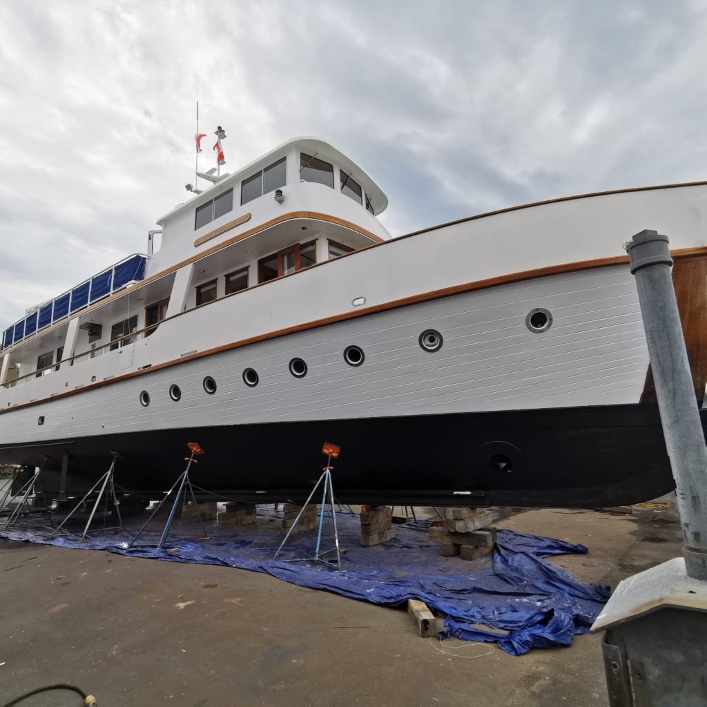 This 1935 Fenner & Hood Shipyards built vessel is in great condition with over two million spent in recent refit and updates, including newer navigational equipment. Three state rooms, plus sleeping quarters for more.
