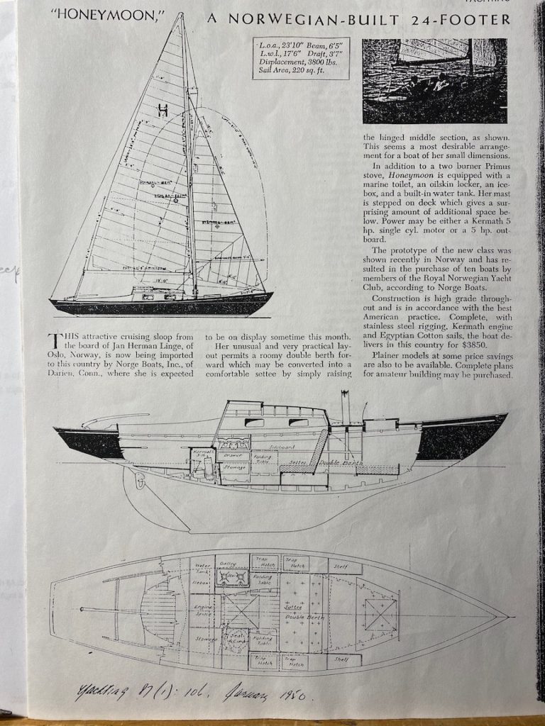 Owner’s Description Honeymoon Sloop, sail #1, daysailer, Bermuda rig, fractional, V berth, tiller, sail area 220 ft, oregon pine plank on oak frame, cast lead keel designed by Steve Killing of Mars Metals, Hamilton, Ont. Already a member? Log in here Photos Map No Records FoundSorry, no records were found. Please adjust your search criteria and try again. Google Map Not LoadedSorry, unable to load Google Maps API. Driving Walking Bicycling Public Transport Miles Kilometers Comments Previous
