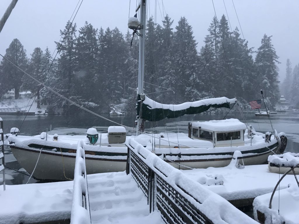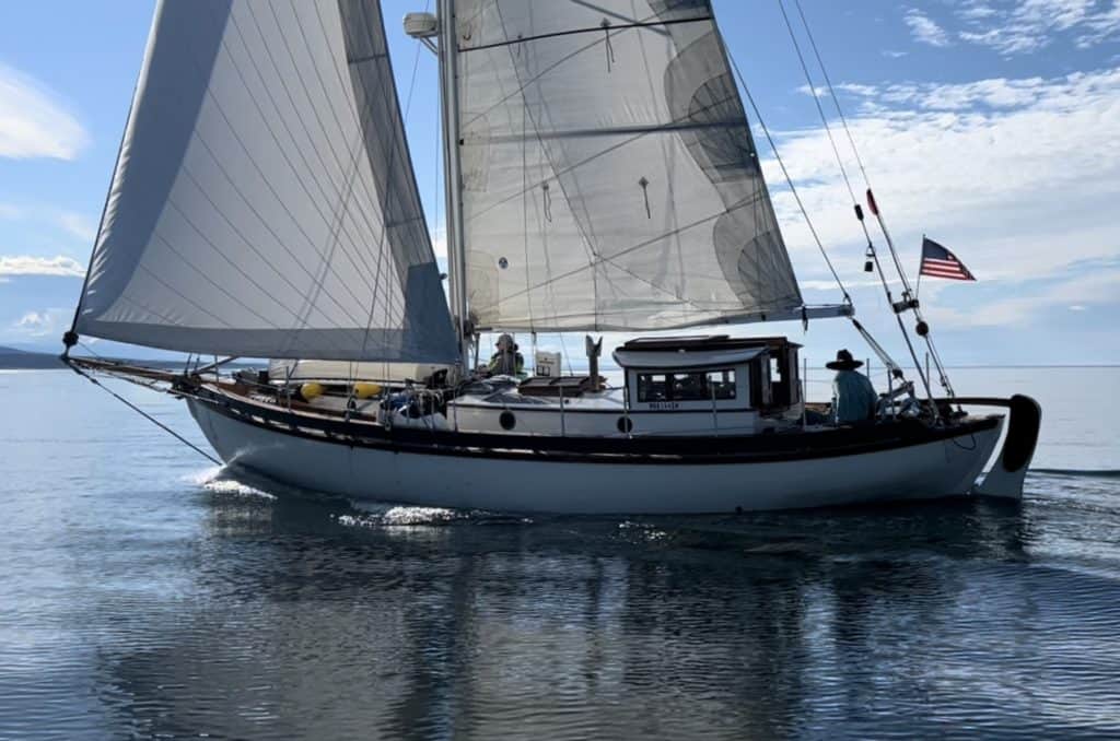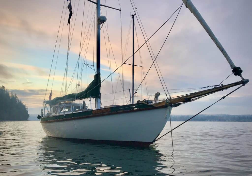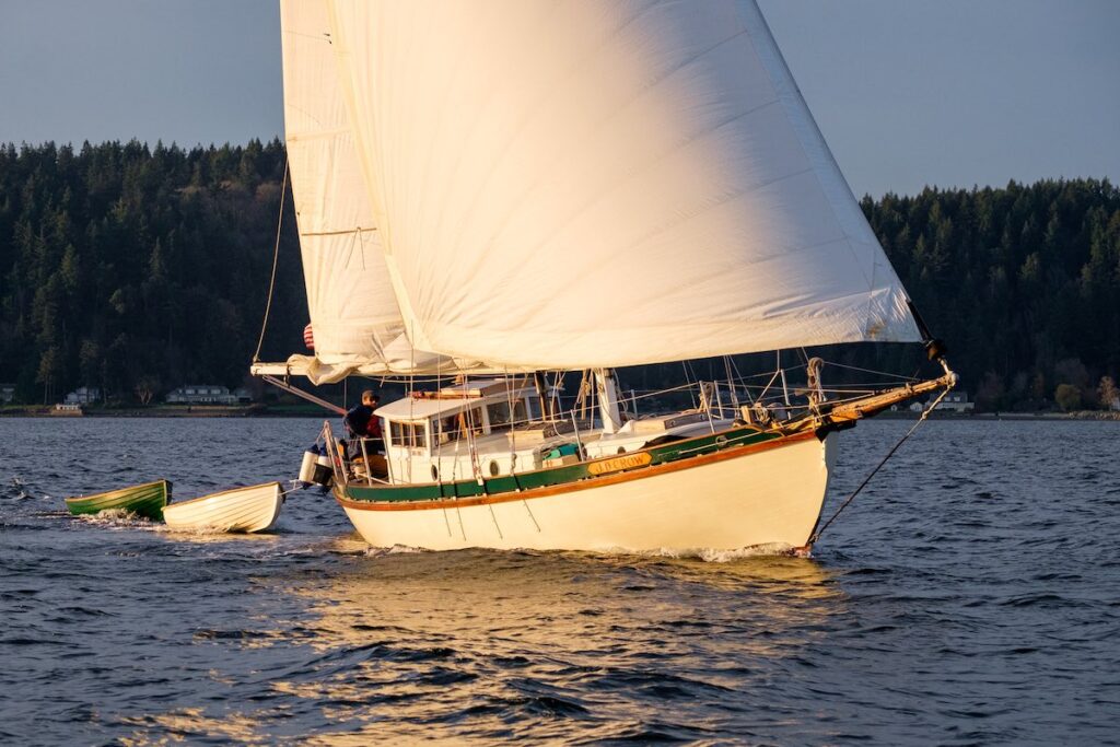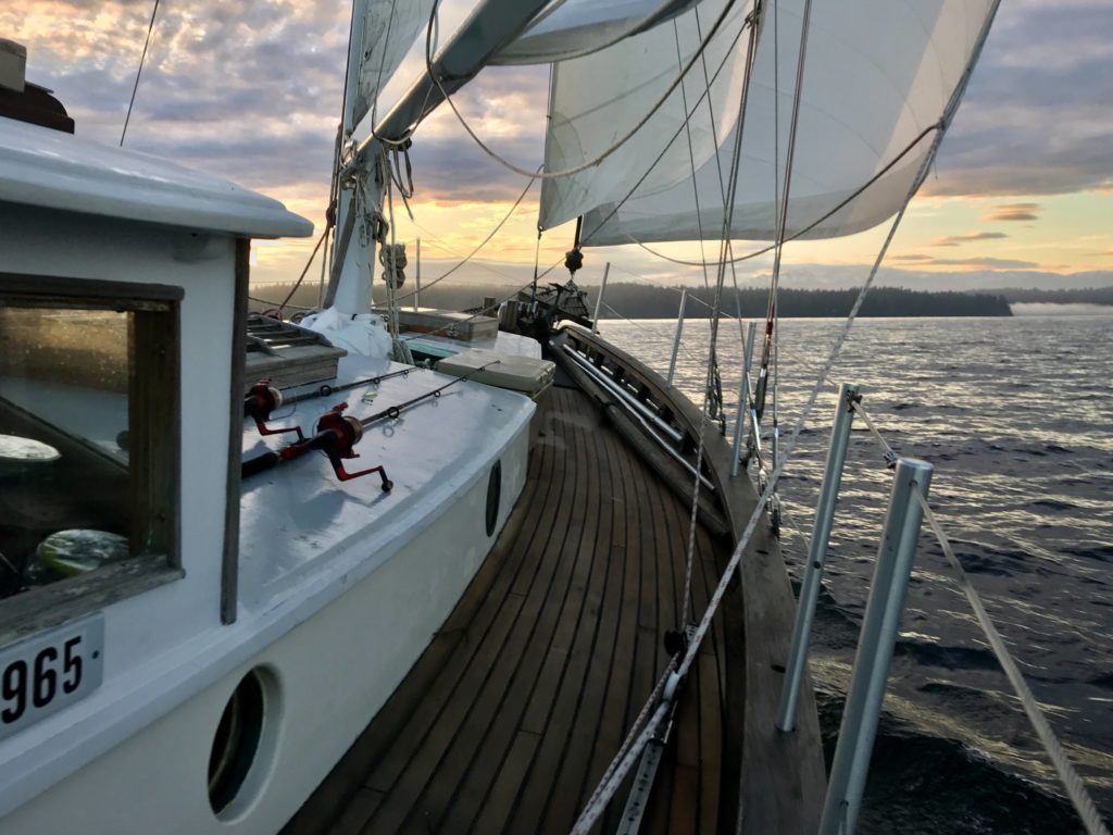 I figured it would take several years to find the right “forever” boat – but then the Crow flew into my life. I’d been dreaming of a tiller-steered pilothouse cutter, ideally double-ended and made out of wood. A salty mariner friend knew my predilections and was a Cortesian while the Crow was being built. He’d heard she was for sale and stopped by Ron’s (in his 1947 salmon troller TOMTE) to check her out the following week. Neither of us could contain our excitement as we realized I was for this boat, and this boat was for me.