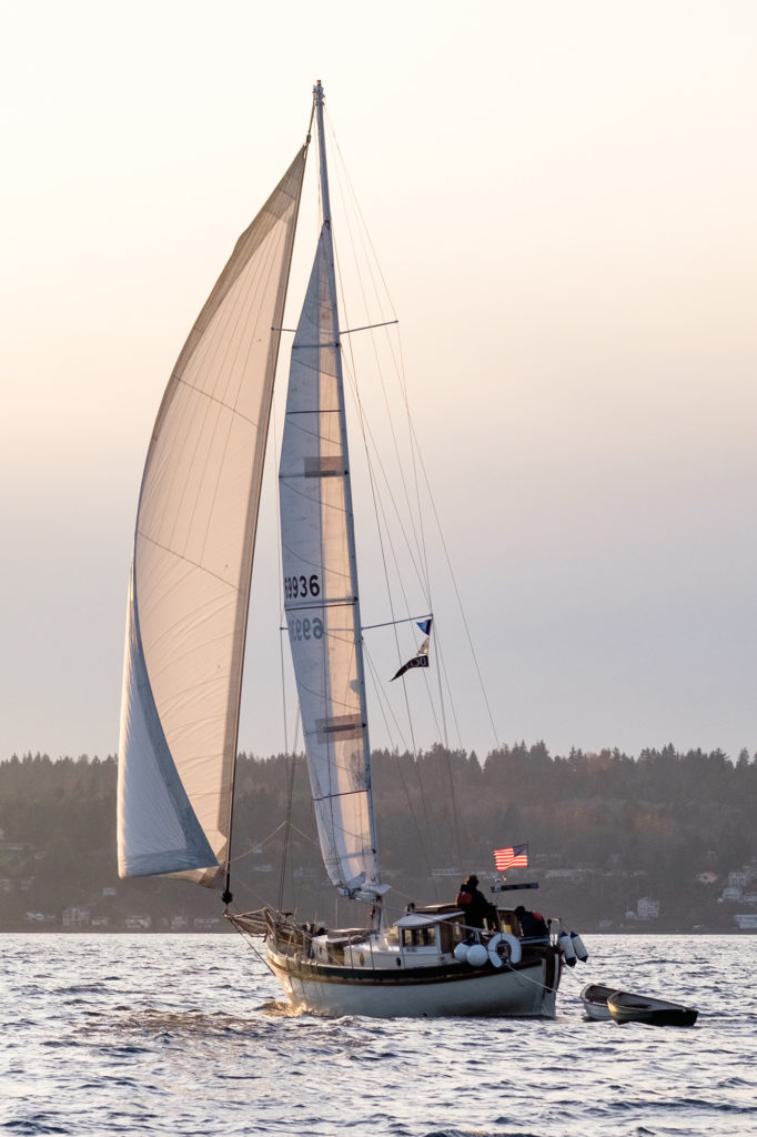With consultation from legends like Tad Roberts and Dale Nordland, Ron created a completely unique Ingrid. Tad designed an extra-large cutter rig to satisfy Ron’s need for (relative) speed (Ron helped found the Shark Spit Full Moon Regatta). The split-cabin design was shaped by the natural bend in 14-foot yellow cedar carlins, and the distinctive pilothouse was made by hand, eye, and batten – no drawings.
