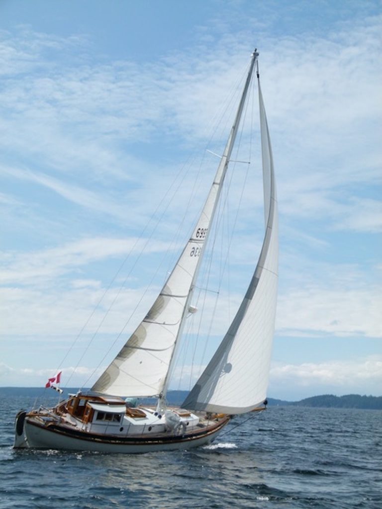 Ron Bowen built J.D. Crow in the spirit of British Columbia’s long tradition of beautiful and seaworthy homebuilt sailboats, with Allen Farrell as premier guru. Ron was a fisherman, logger, and do-it-all based out of Victoria with a dream of building a plank-on-frame Ingrid (he’d previously built a fiberglass Eric Jr.). He was also a bluegrass banjo player and fan of J.D. Crowe.Ron moved to Cortes Island in 1980, drawn to its blend of community, seclusion, and materials. He built a boat shed which has since housed several more builds and is now a home! With a bevy of “sport-logged” old-growth timber from years fishing the waters of BC and Haida Gwaii, he set to building his dream boat.