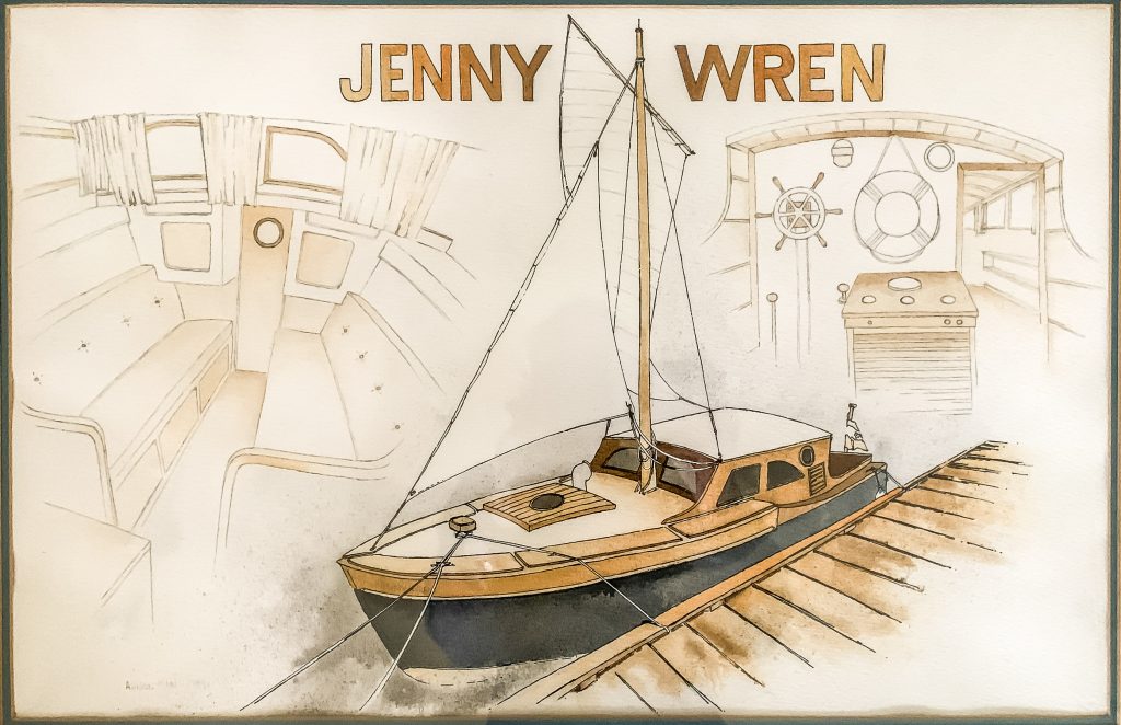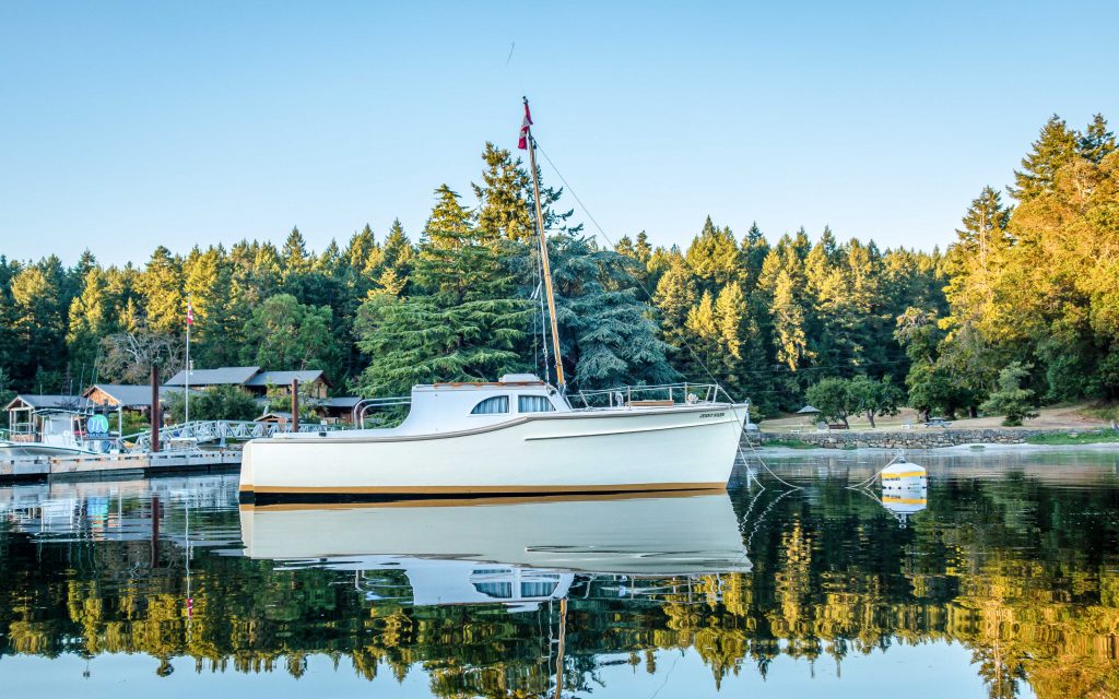 Jenny Wren was built in 1962, by Charles Butterworth and his son. Charles was a shipwright in the Canadian Navy at the time. The plan for Jenny Wren was featured by Yachting World in 1938. Jenny Wren was sold to Dave Miller around 1965, and she moved to Squitty Bay on Lasquiti Island. Dave took his children to school on Vancouver Island making the daily trip between French Creek and Squitty Bay whatever the weather. Jenny Wren proved her seaworthiness! We bought her in 1977 when our son was 3 months old. We were friends with Charles Butterworth and keen to buy her when we heard she was for sale. We were pretty naive and she was in a sad state of repair. The once lovely mahogany strip decks were covered up. Over the 48 years she has been with us, and with the help of our good friend and shipwright David Betts, we have gradually restored her. We have had so many wonderful adventures in Jenny Wren since 1977. Our son Pip and his family are the main users now and will be taking over ownership. Each year we head off on holiday together, with my wife and I in our Camano Troll. We cruise around the Gulf Islands and the San Juan Islands. Lots of adventures. The engine is original, very noisy but reliable. She has a lug sail and a small jib.Already a member? Log in herePhotos