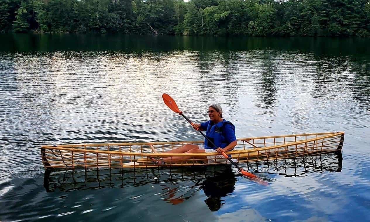 Paddling around Lake Julien in South Asheville allows me to see the murky bottom. I also get plenty of stares as the boat from a distance looks as though there is no skin. If you are a first time boat builder, these skin on frame boats from Geodesic Aerolite are a great way to ease into creating something beautiful and practical.