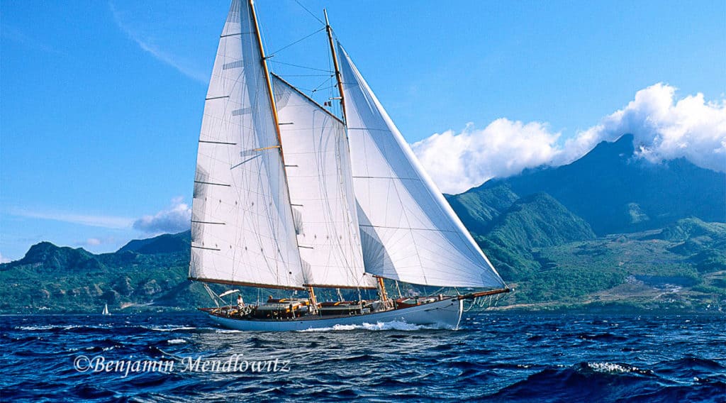 JUNO is a 65-foot schooner built at Gannon and Benjamin, combining classic design with modern performance. Crafted from tropical hardwoods, with robust sawn frames, bronze fastenings, and double planking, she’s built for strength, durability, and comfort. Designed for long-distance cruising, including annual trips between Vineyard Haven and the Caribbean, she excels in both regattas and on the open sea. Her hand-crafted interior blends functionality and elegance, while her versatile design ensures she’s always ready for racing or cruising. JUNO is frequently found between the Caribbean, Maine, and her home port of Martha’s Vineyard.Already a member? Log in herePhotos