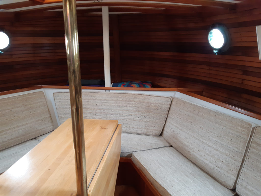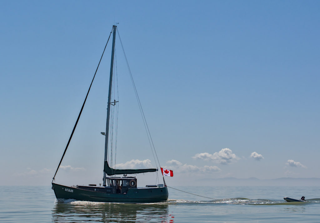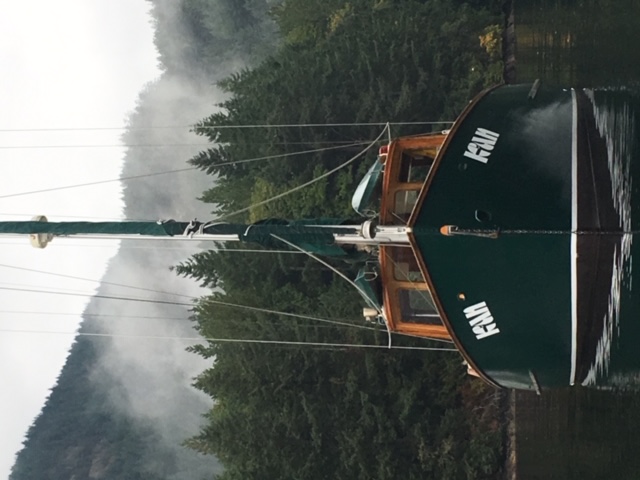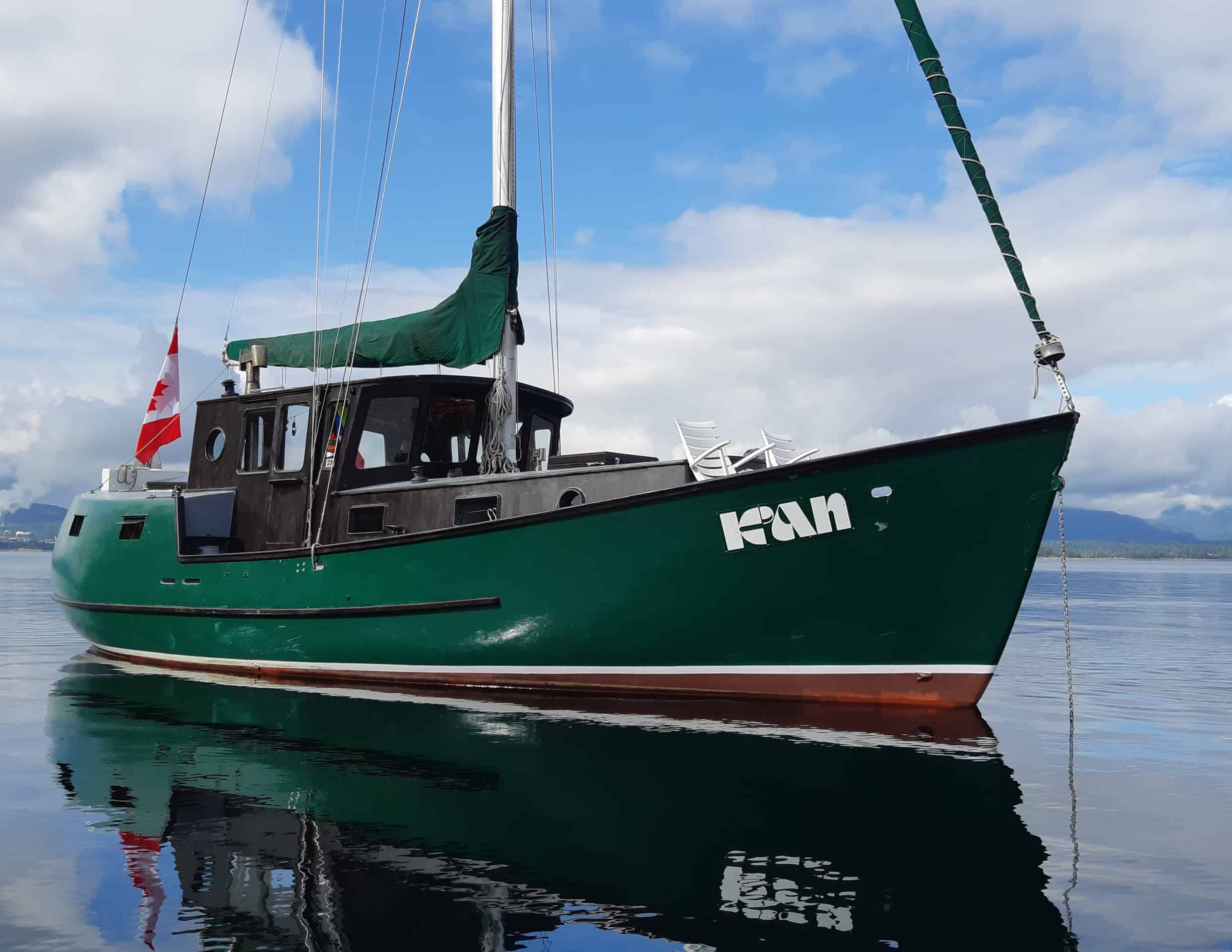 The perfect compromise of fiberglass below the waterline and wood above, K’AN is an elegant pilothouse with a kindly sea manner. Designed by a young Jay Benford and painstakingly built to the highest standard by the original owner, she is veteran of BC’s rugged coast. The full keel and double ended hull profile slips through the water like her namesake; K’AN is Haida for dolphin. A large rig and generous sailplan allow K’AN to move at hull speed while a Gardner diesel with feathering prop provides power for those calm days. The central pilot house is the perfect vantage point for the skipper and crew to tend to K’AN while escaping the famous cold damp west coast weather. Inside is spacious and bright with lots of natural light and a well thought out interior perfect for extended adventures. The gorgeous woodwork throughout is warm and cheery. From the pilot house the forward companionway leads to the accommodations, which can comfortably sleep five and an enclosed head with tub/shower. The aft companionway leads to the saloon complete with galley and a large wrap around dining area. As the sun goes down the skipper and crew are drawn to the comforts of the saloon to discuss the days’ events.Already a member? Log in herePhotos