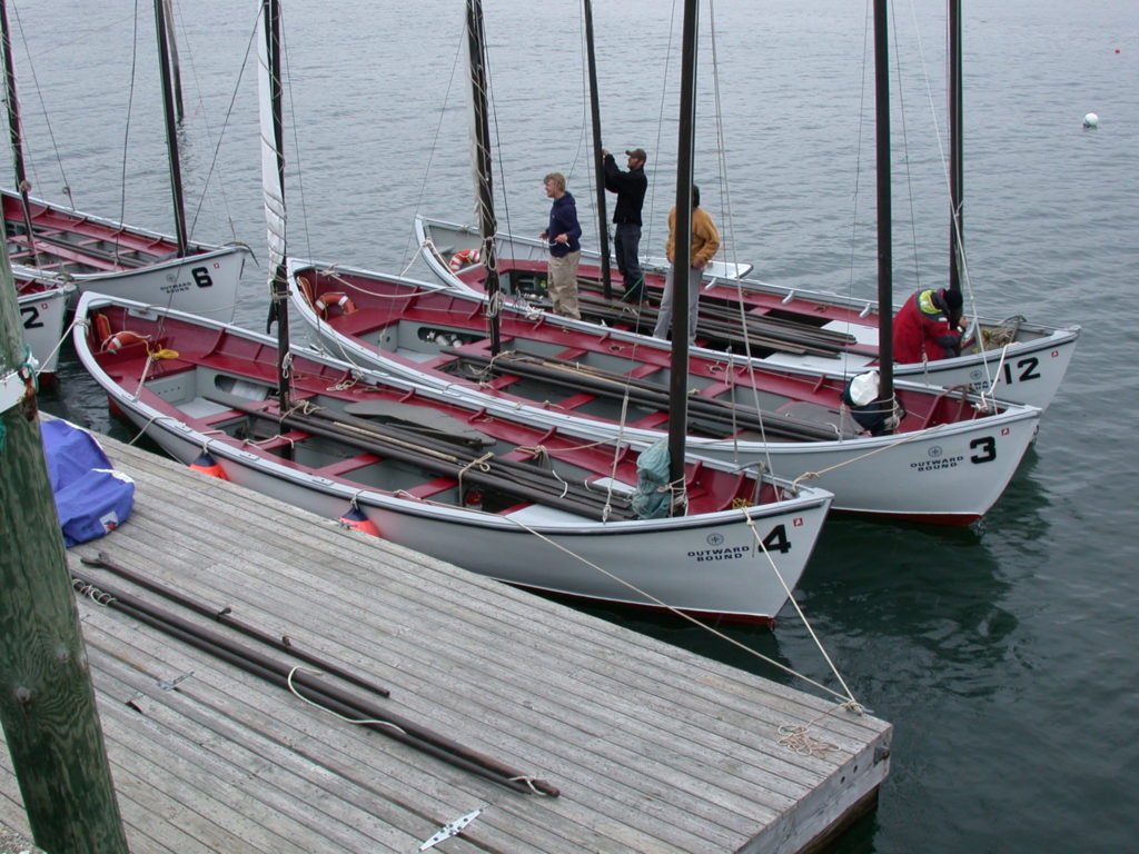 This boat was decommissioned by the Hurricane Island Outward Bound School in the late 2000’s. I have owned it for about 6 years. These boats were designed in the 1960’s for Outward Bound by Cyrus Hamlin, a designer of some renown (Clearwater, Controversy Sloops, as just a few). The design was required to accommodate up to 15 souls (2 or 3 instructors and 12 students), and the requirement was that this crew could sleep aboard!! As crazy as it seems, it worked, and still works, as many of the over 20 of these boats built to this design are still in service doing exactly what I just described. I had the pleasure and honor of sailing on these boats for many years from 1992 until 2000 as an instructor. Most challenging and rewarding work I have ever done (and fun!), and in eventual retirement, I hope to do it again.As the boats have aged several have not been approved by USCG inspectors, and so were sold out of service. The boat pictured is one of those. While this is Pulling Boat #8, I have given it the name “Kate and Rafe Parker” in honor of the intrepid couple who were Early leaders of the Hurricane Island Outward Bound School. I have been privileged to have befriended them in my life.