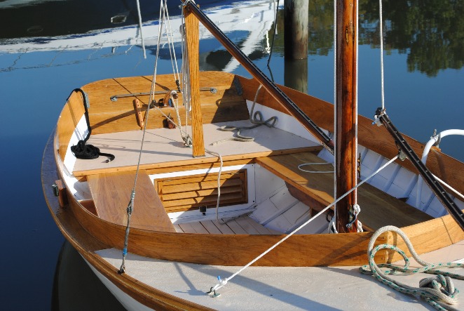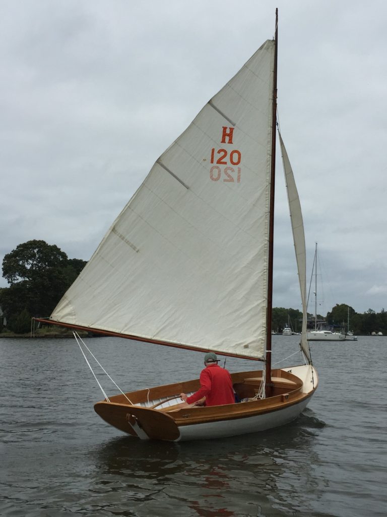 Kewpie is a wooden Herreshoff 12 1/2 that had been retired and become completely rotten after a long sailing career. In 2008 I started rebuilding Kewpie as a solo project undertaken in free moments in my backyard. After 12 years of work, I launched Kewpie in September 2019. Only a few original pieces of wood fashioned at the Herreshoff yard in 1935 remain, but Kewpie is true to the original design and materials. She sails beautifully, which I consider much better than watching her biodegrade.Already a member? Log in herePhotos
