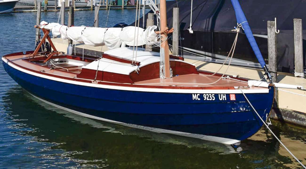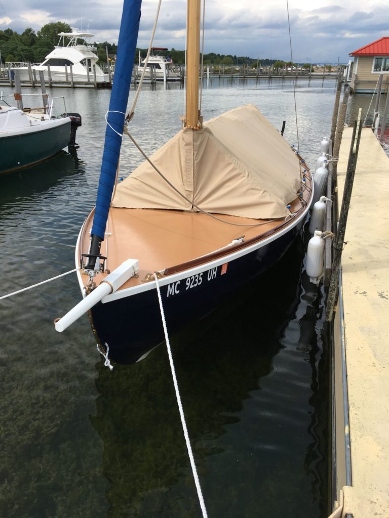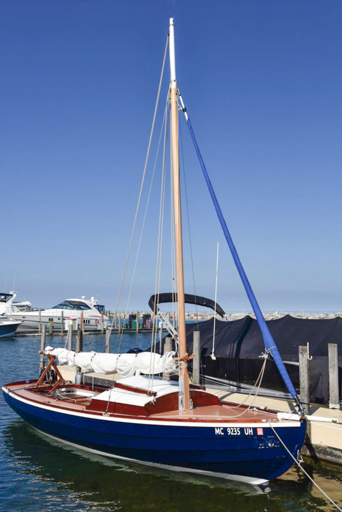4) Comfortable to sail in a variety of wind and sea conditions. The short mast and gaff rig with a 3-reef main allows adjustment to many conditions and a 400-pound centerboard provides good stiffness.