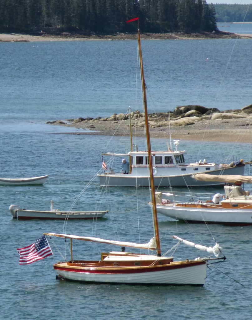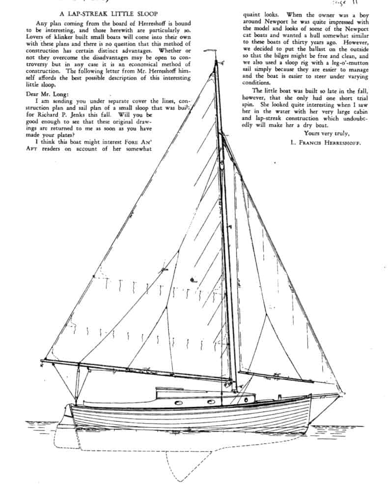 LILY is one of only a handful of boats built to L. Francis Herreshoff’s Design #43 and I don’t understand why. Compared to LFH’s later “how to build” 23′ Prudence, this Prudence design has advantages in having more sail area, drawing only two feet of water, and having a handsome, round-fronted trunk cabin. I find reefing is the way to go for the afternoon breeze, but the tradeoff is worth it because she’s so speedy with full sail in light air. Her rig is utterly simple, with only a forestay and single shrouds. As you can see from the OffCenterHarbor video we made, she’s a joy to sail. Her late builder, who I never met, did a bang-up job of putting her together. He built her just as designed including the Shipmate stove. L. Francis would be delighted—and I am too.Already a member? Log in herePhotos