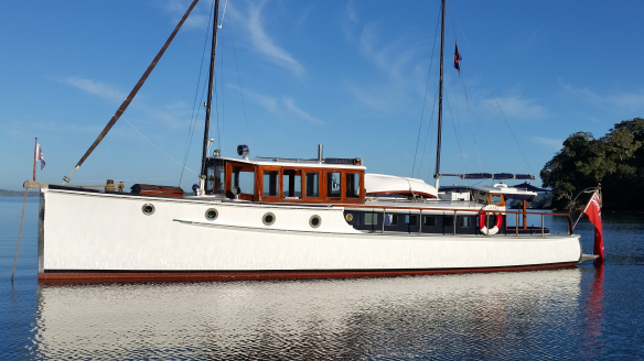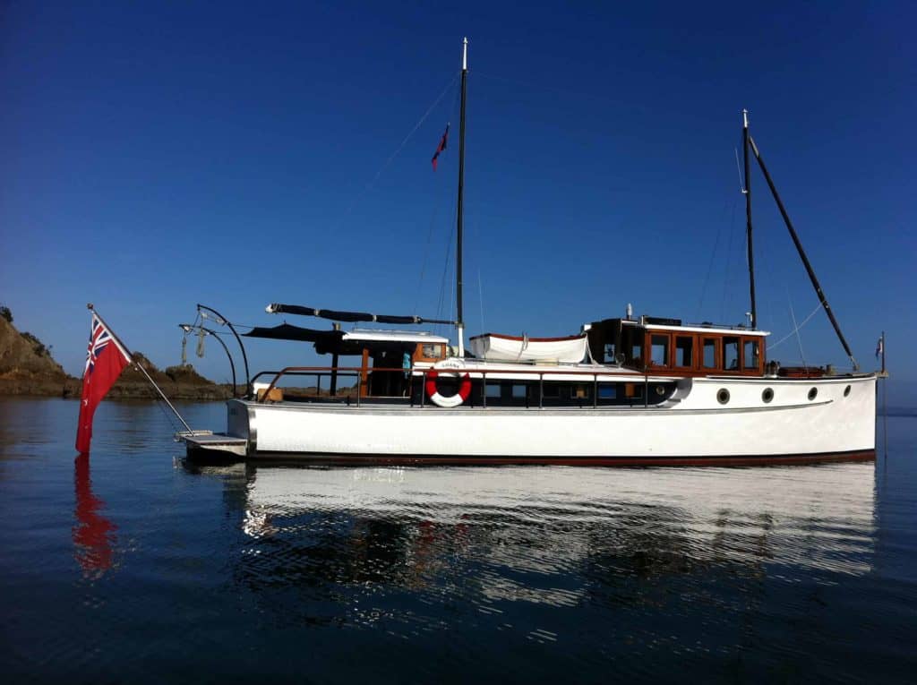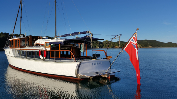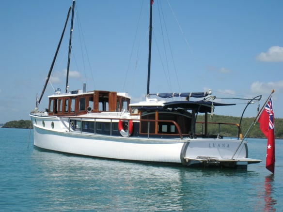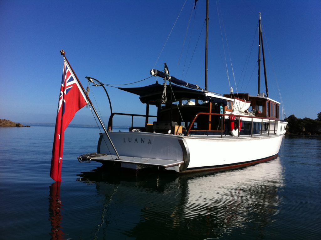 Luana was the first bridge deck launch in New Zealand. Luana was her original name and she was powered by a large American Van Blerck petrol engine which has been replaced latterly by a diesel. Few individual owners over the century with the current ‘custodians’ having owned her for 26 years. Constructed using full length heart kauri carvel planked. Over the last hundred years Luana has been a pleasure boat, towed logs, game fished, dredged mussels and finally returned to pleasure cruising. Luana holds the record for catching a marlin, shooting a deer and catching a trout of 3 and a quarter hours from back in the 70’s. Also caught a 680lb tuna. The black and white photo shows a newly launched Luana with HMS Hood in Auckland in 1924. Hood, the Royal Navy flagship, at the time was on a world circumnavigation. Unfortunately Hood exploded and sank during an exchange with the Bismarck in WW2.Already a member? Log in herePhotos