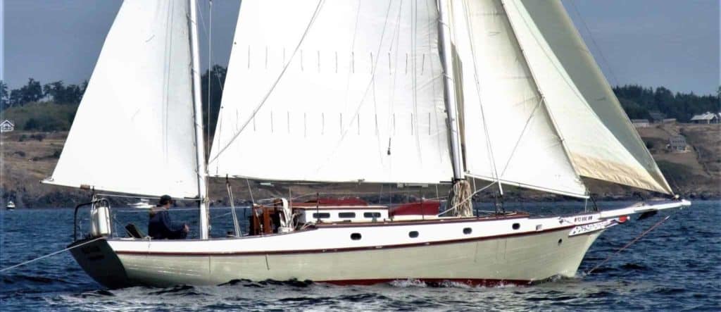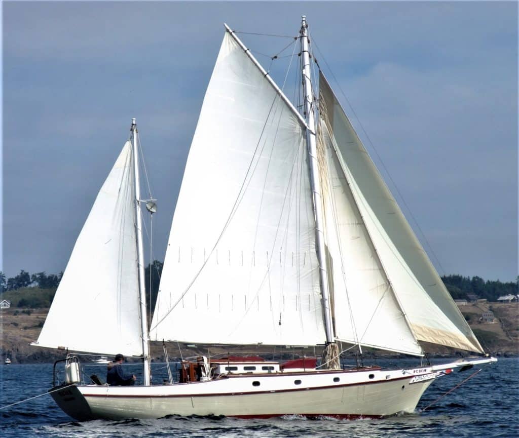 Macaw is a Sam Crocker designed gaff-rigged centerboard ketch. Build by Sturgis Crocker and launched in 1956. I have owned it for 30 years. It is 42′ LOA, 10′-6″ beam and draws 2’6″ with the centerboard up. She was design for sailing in the Bahamas, but has been in Puget Sound for the past 50 years. I have sailed her extensively in Puget Sound, the San Juan Island, the Gulf Islands, and Desolation Sound, Canada. We’ve frequently been to the WoodenBoat Festival in Port Townsend,WA.Already a member? Log in herePhotos