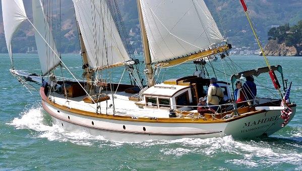 Renamed back to her original Mahdee, the ’80s and ’90s saw her in repose in a slip in San Diego enjoyed by a retired Navy man, Tom McHugh, and his large liveaboard family. When we purchased her in late 2006 and began her restoration, we were very happy to have the opportunity to bring her back to her ocean-going sailing days. And now we enjoy sailing her on the west coast of North America.