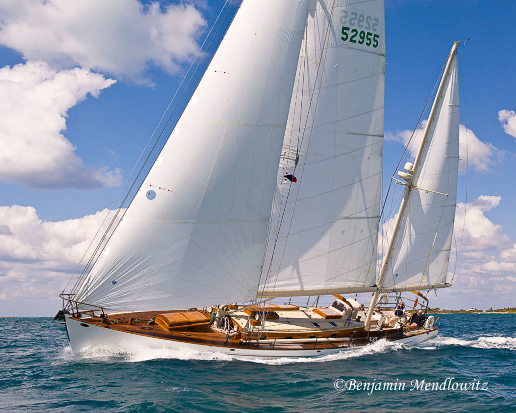 A lovely one-of-a-kind ketch constructed by Brooklin Boat Yard to plans by in-house designer Bob Stephens and much influenced by ketches of L. Francis Herreshoff. She’s proven herself on both coasts of the US and now sails from San Francisco under the same owner who had her built. She wears well!