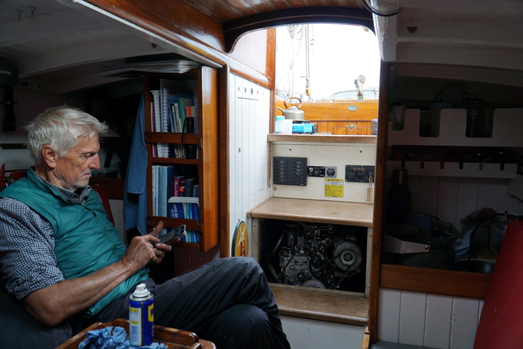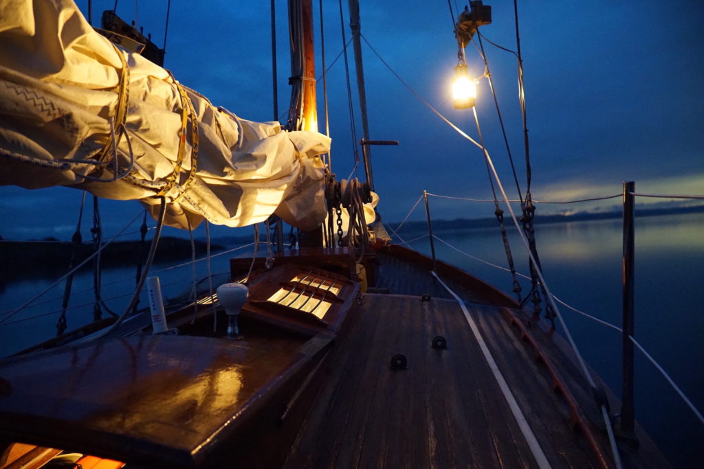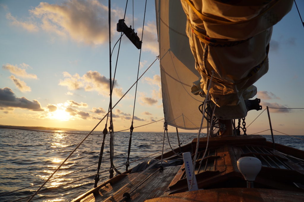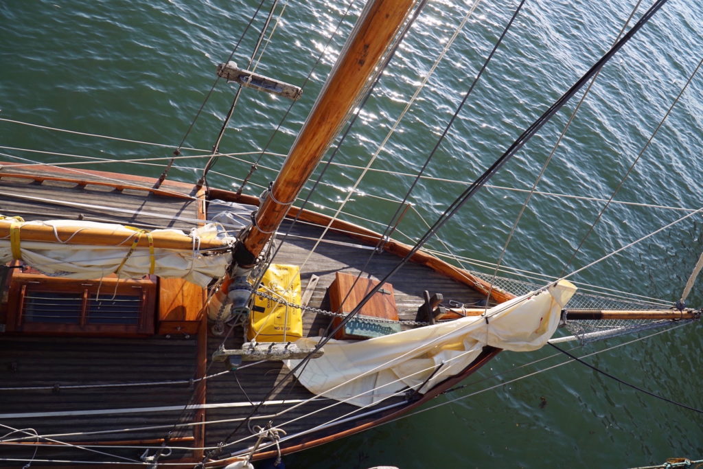 The story of the boat is that the design came to life on the back of an envelope while John and Helen Tew dined on honeymoon in Fowey, Cornwall. John was a yacht designer who worked with Jack Laurent Giles, and Helen was the daughter of Commander RD Graham who was the first man to cross the Atlantic single-handed east to west by the northern route in the 30’ cutter “Emanuel”. With their design loosely formed they then approached the local boat builder of repute, Percy Mitchell from Port Mellon (which is not far from Fowey), to ascertain potential costs. The outcome, in line with their funds, and their plans to sail to Canada to start life there, was a robust 6 ton (TM) Gaff Cutter that was 26ft 3ins on deck, 8ft 3ins beam and a draft of 5ft. She was launched in 1937 and was constructed of pitch pine on steamed timbers with grown oak and iron floors. On the day of launch she was wrecked and then had to be repaired, but that’s a story for another time.