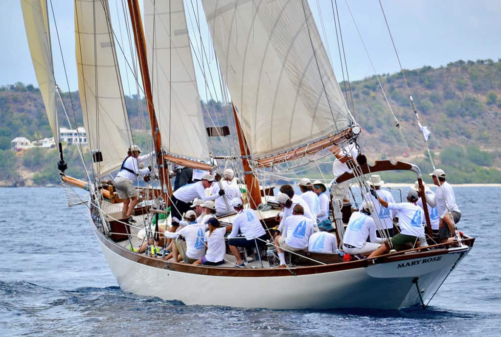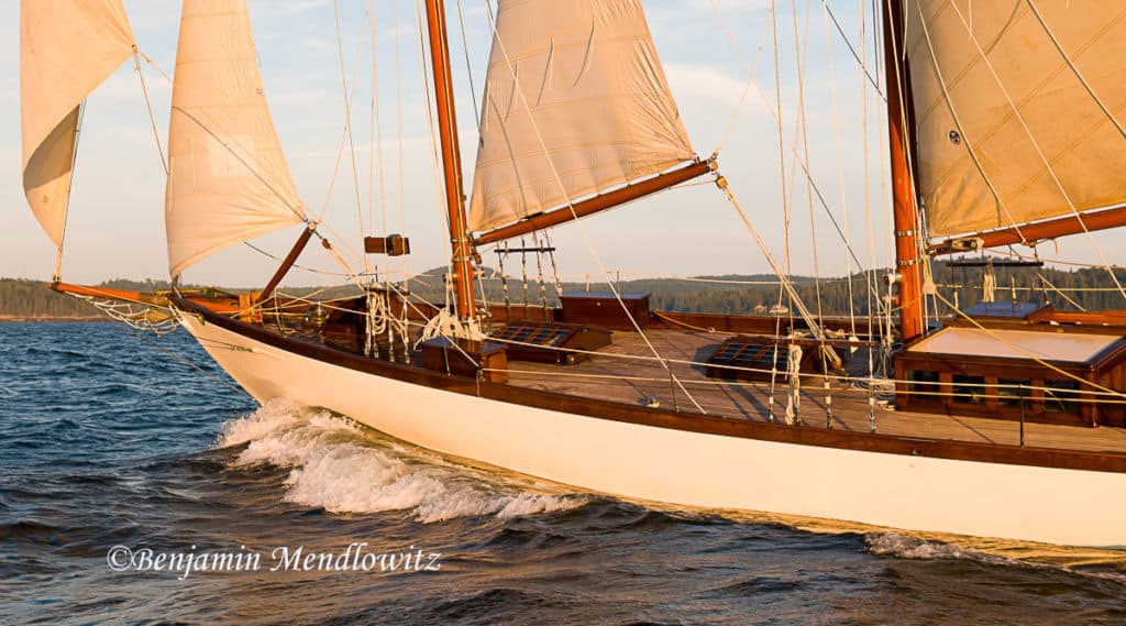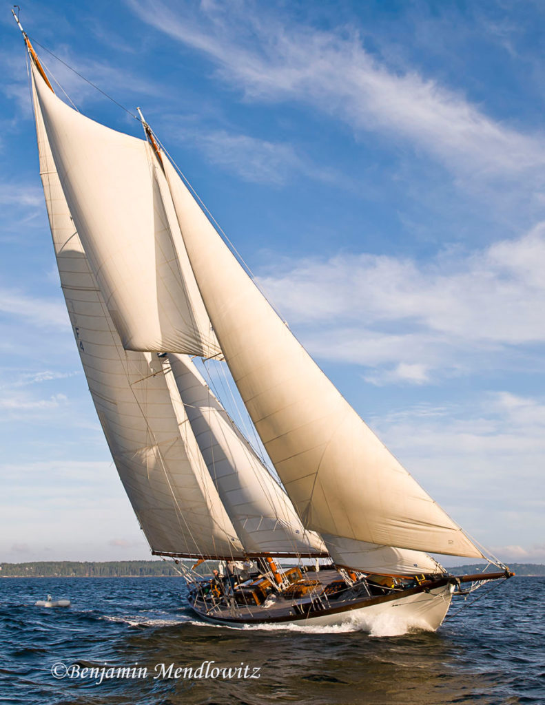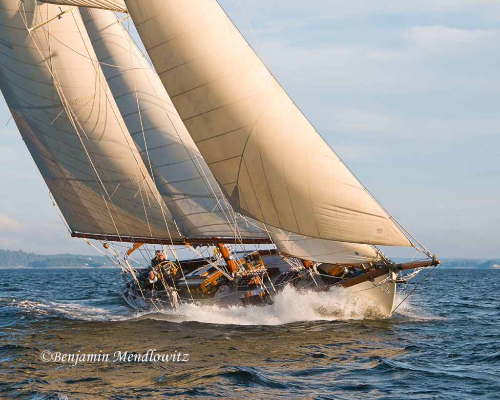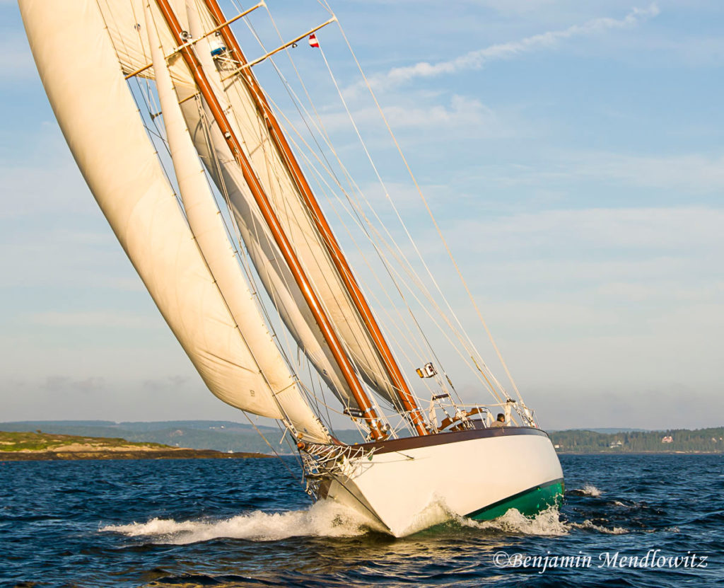 After many years on the West Coast named GALLANT where Wayne Ettel and his crew in Southern California dug deep and renewed or repaired her steel frames and deck beams, she came once again to New England for some finishing touches, then sailed to Antigua where she continues to sail and race.