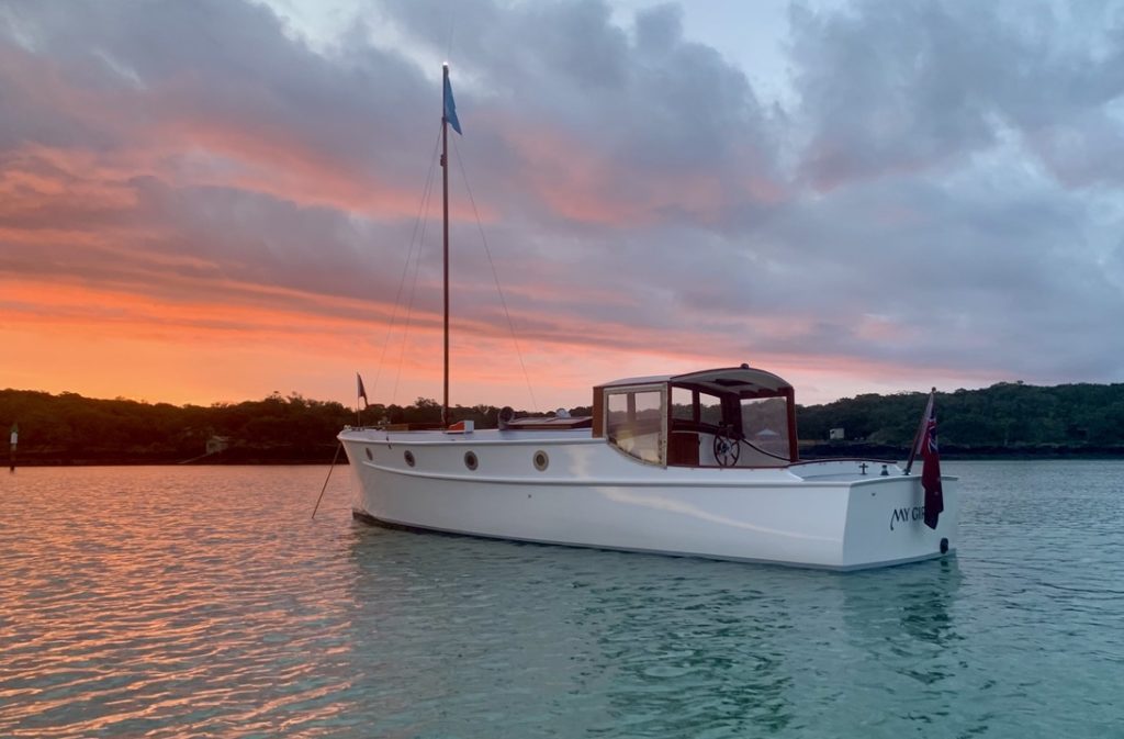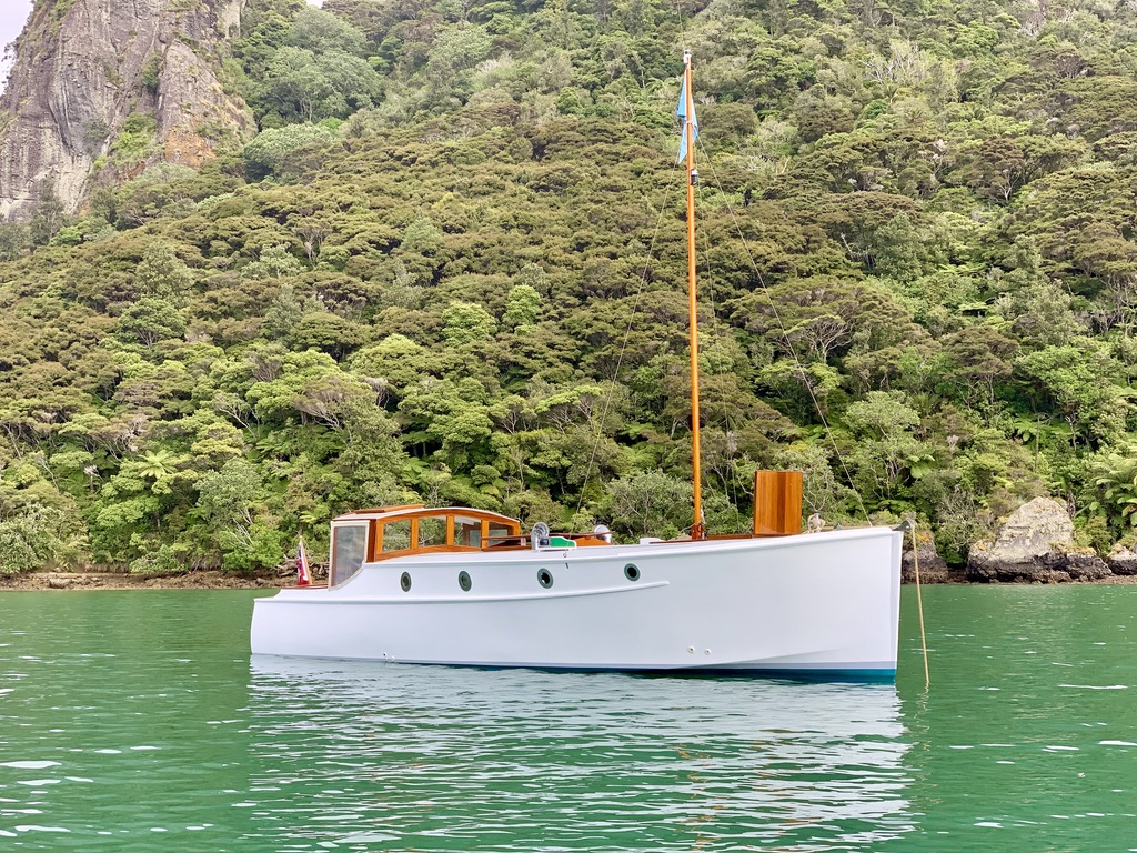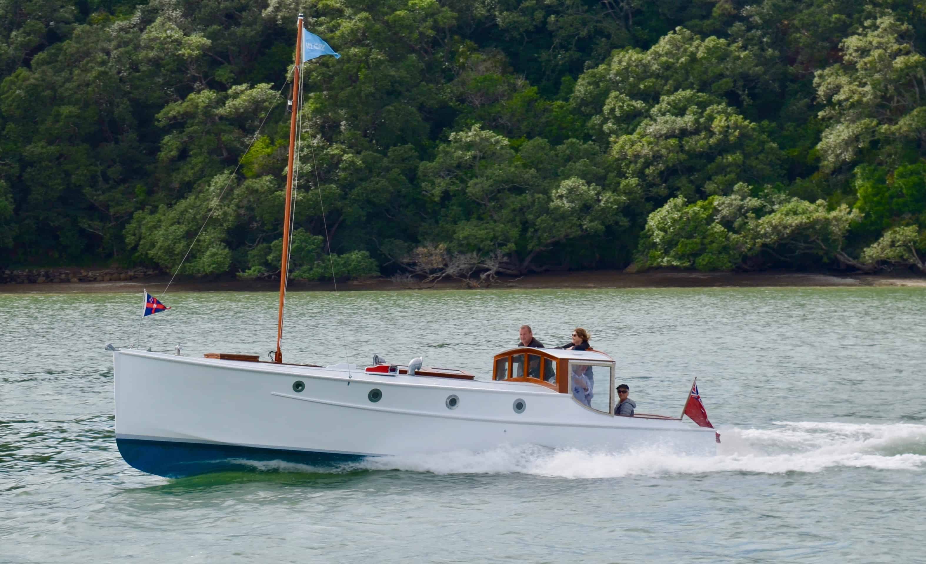 “My Girl” was built as a commuter Launch by R Lang in 1925 to a design by W Hand Jnr. She travelled regularly from the Wade River to Auckland before the roads in the area were well formed. During WW2 she served in the RNZ Navy as a fast patrol boat out of Whangarei. She was restored in 2018 to her original layout and appearance.