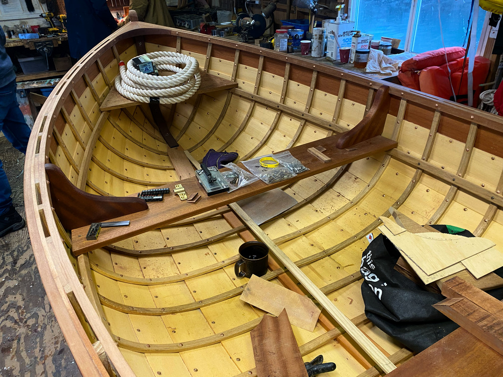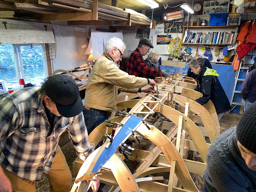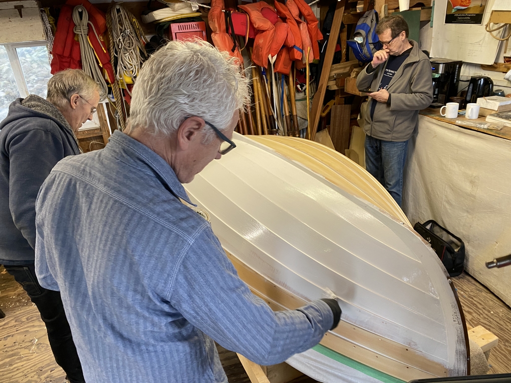The club currently has 5 boats in the water – 4 sailboats and 1 rowboat. We are well along on our current new build, a Luoma Brothers handliner based on plans taken from a boat built in 1937.