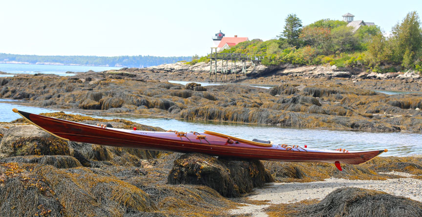 Ootek is a Wood Strip sea kayak based on West Greenland Inuit indigenous hunting kayaks. Unlike true Greenland designs this kayak is a soft chine hull. Significant flare above the waterline gives it great secondary stability yet with a narrow waterline beam for speed. A well behaved design with increased stability in rough water. Great tracking and easy to maneuver with a retractable skeg to tame beam winds and following seas. A finished weight of 35 pounds helps combat the ever increasing pull of gravity as the years go by.