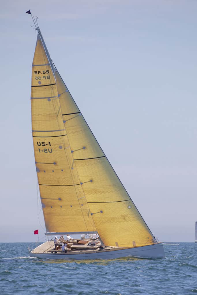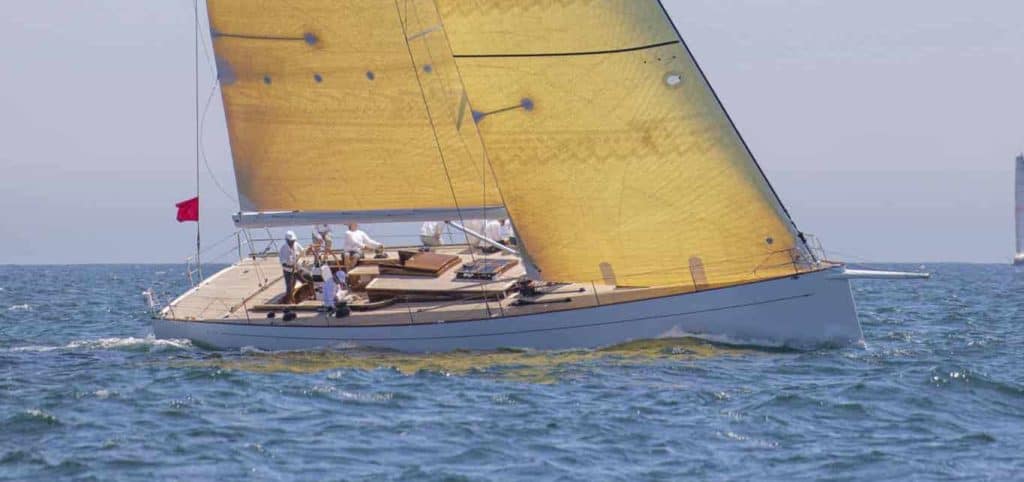 OUTLIER is a 55-foot cold-molded custom yacht designed by Botin Partners of Spain. She’s a spirit of tradition racer and daysailer engineered for performance. While she has a modern underbody with a deep, fixed-bulb keel, OUTLIER’s aesthetic above the waterline is decidedly traditional with a roomy cockpit, closed transom and classic housetop.OUTLIER has a lightweight cold-molded wood hull and deck built with a carbon-reinforced keel structure to support the deep fin and lead bulb. The three-spreader carbon mast is from Hall Spars with a North Sails 3Di sail plan. Since OUTLIER’s owner doesn’t intend to taker her offshore for extended cruises, the accommodations are clean, classic, and simple. The lightweight interior is built with paneled vertical grain white oak and an English brown oak cabin sole and finished in satin sheen varnish with white painted deck frames for accent. There is a spacious main salon amidships, which connects with a simple galley and well-equipped navigations station. A quarter berth aft offers sleeping accommodations while underway, and a forward cabin has four bunks for crew plus a full head.
