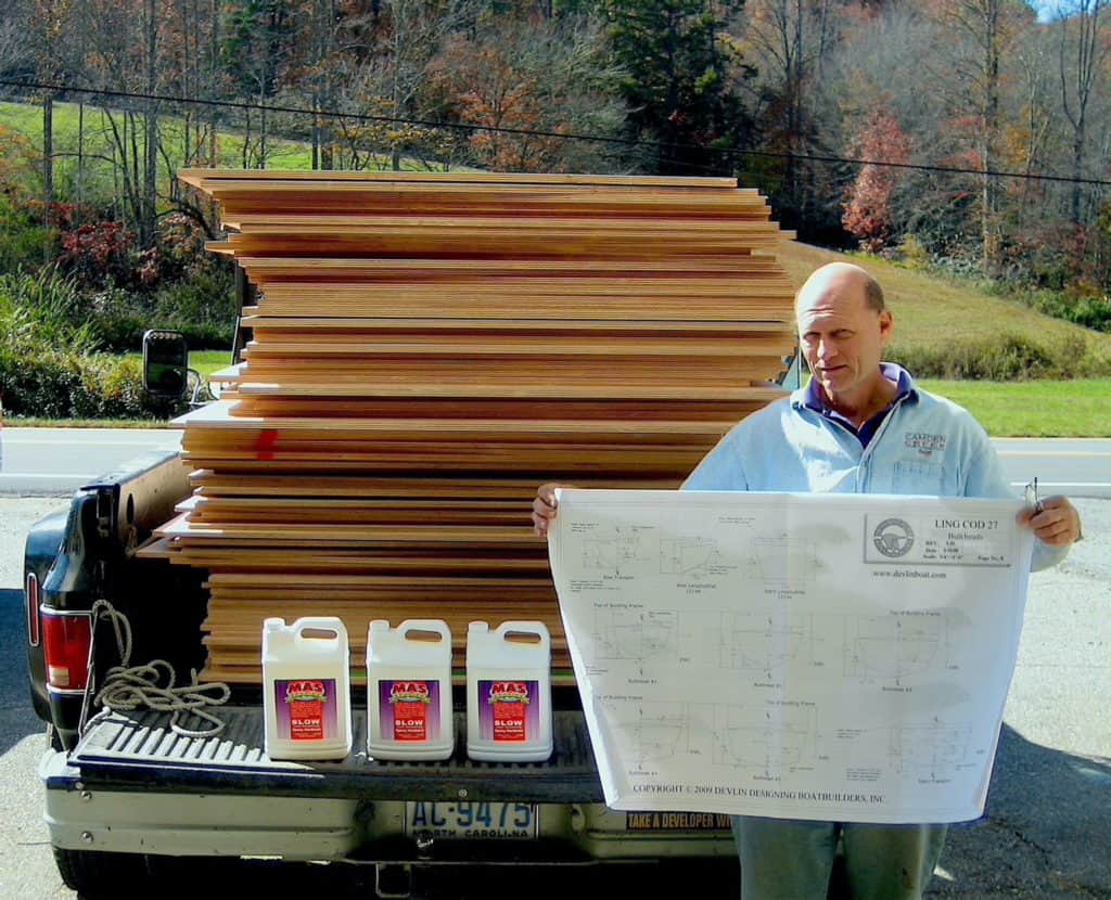 She is built with the Sam Delvin Stitch-N-Glue method of construction. The bottom is 2 layers of 1/2″ plywood and the topsides are one layer of 3/4″ plywood, all covered in fiberglass.Already a member? Log in herePhotos