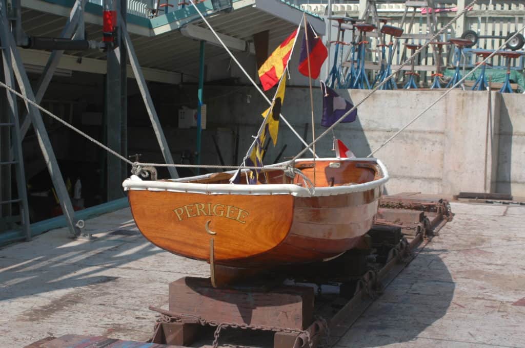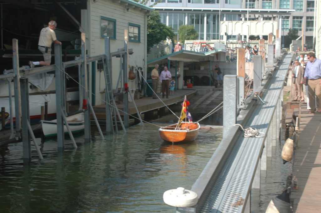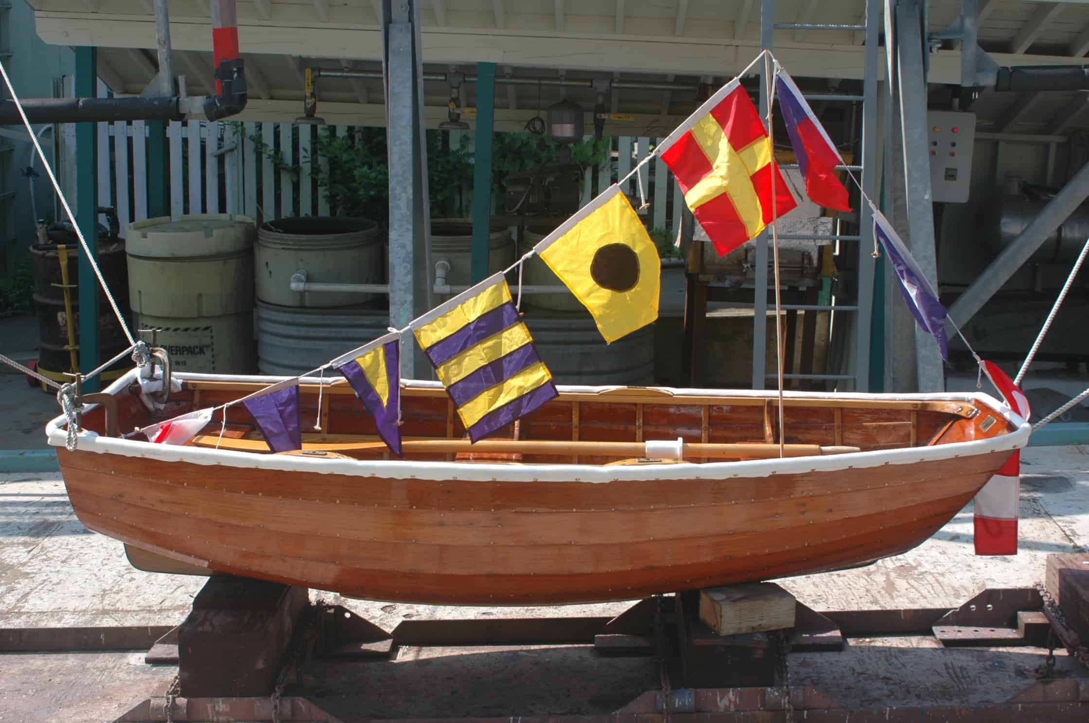 Bateka Dinghy, built in 1954 as tender to the Concordia Yawl Skye, Abeking & Rasmussen no. 4981. She was separated from Skye and hide in a barn in Maine for many years until we found her and brought her to the Pacific Northwest to be restored. She came west on the trailer of the Pocock Racing Shell Company along with 10 eight-oared racing shells. There is a hole in her forward seat which appears to be for a mast but there is no other accommodation for a sailing rig. It was drilled to qualify her as a sailing dinghy because the import duty on a rowing dinghy was higher.Already a member? Log in herePhotos