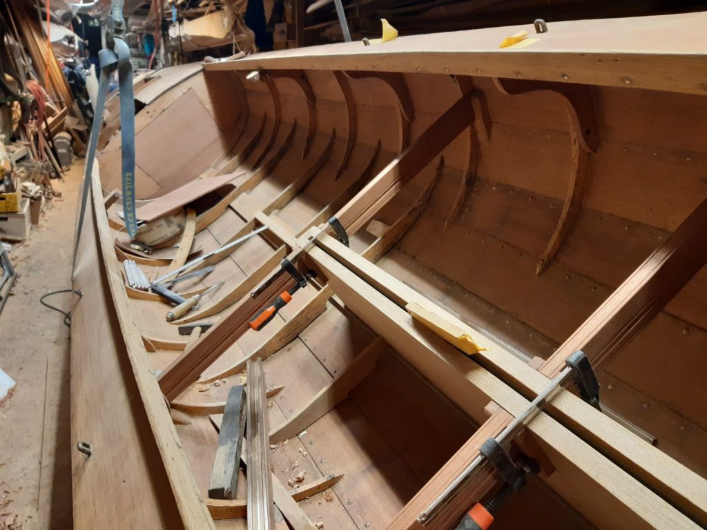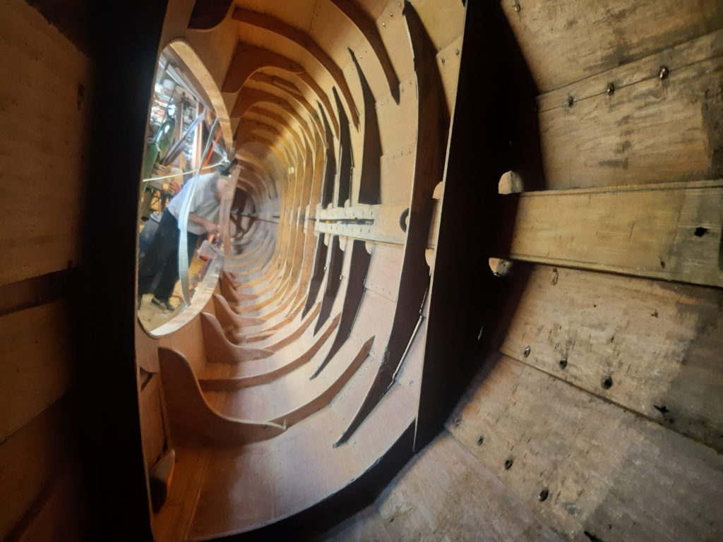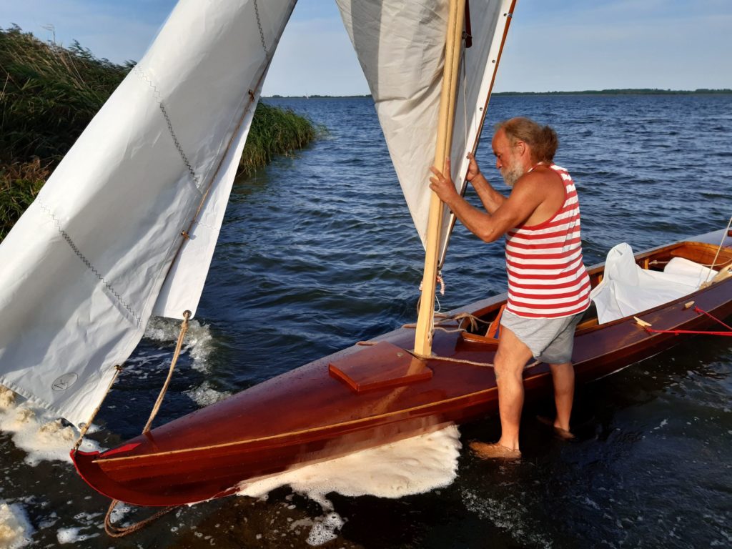 Peter was build in 1911 by Franz Wetzel at the Bootswerft Germania in Stralau, what nowadays is a part of Berlin, GER. We do not have a lot of information of its life afterwards. Peter got a new bottom at one time and when we got it in 2010 it was equipped as a motorboat with parts from the GDR. We started a full restoration last winter (2021/22). Because we more or less only had the hull, we reconstructed everything around it, for example the centerboard case.