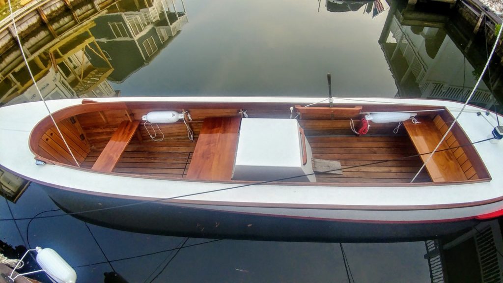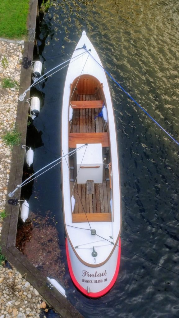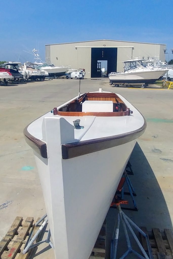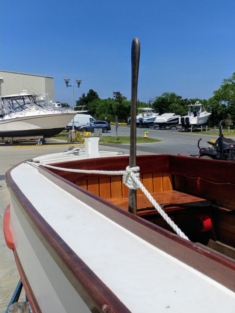 Authentic wooden replica of a 1920s Hoopers Island Draketail bay workboat. Built by the Chesapeake Bay Maritime Museum’s apprentice boat building program. Made of teak, cedar, oak, and mahogany. A bronze stick steers the boat, connected to the tiller with ropes and pulleys. I bought the boat from the museum a few years ago when they put it up for sale in their annual charity auction.Already a member? Log in herePhotos